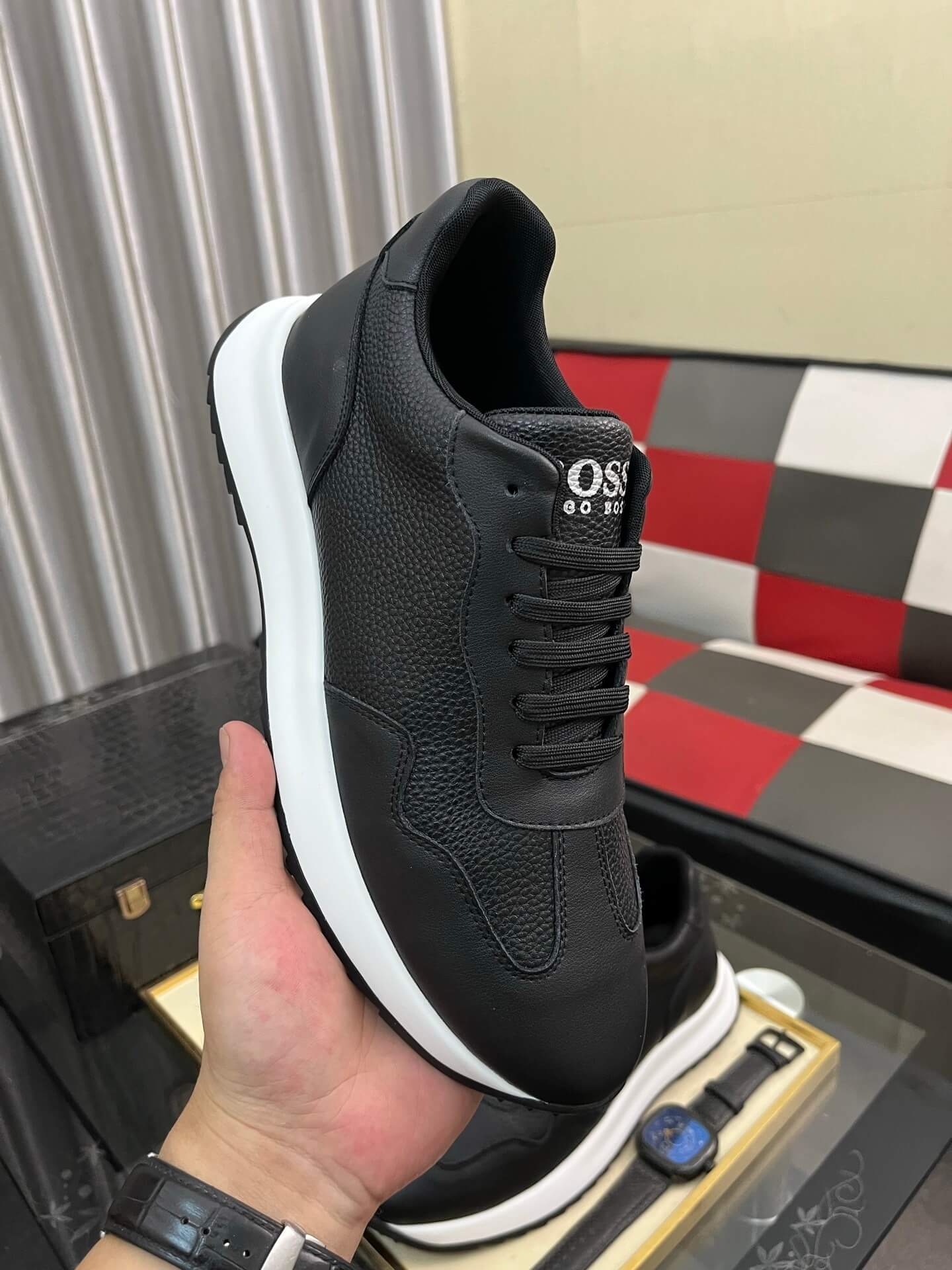 - Minimalist Branding: Features subtle BOSS logo detailing on the tongue and side lacing tab in white or silver contrast lettering.