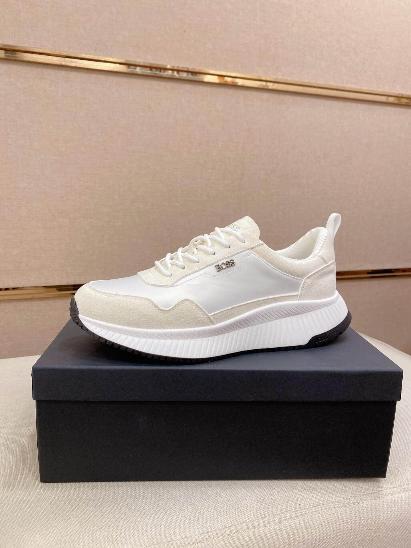 - Design: Low-top trainers with a lace-up front. They have a streamlined silhouette with subtle paneling and a distinctively sculpted sole. The “BOSS” logo is visible on the side of the shoe.
