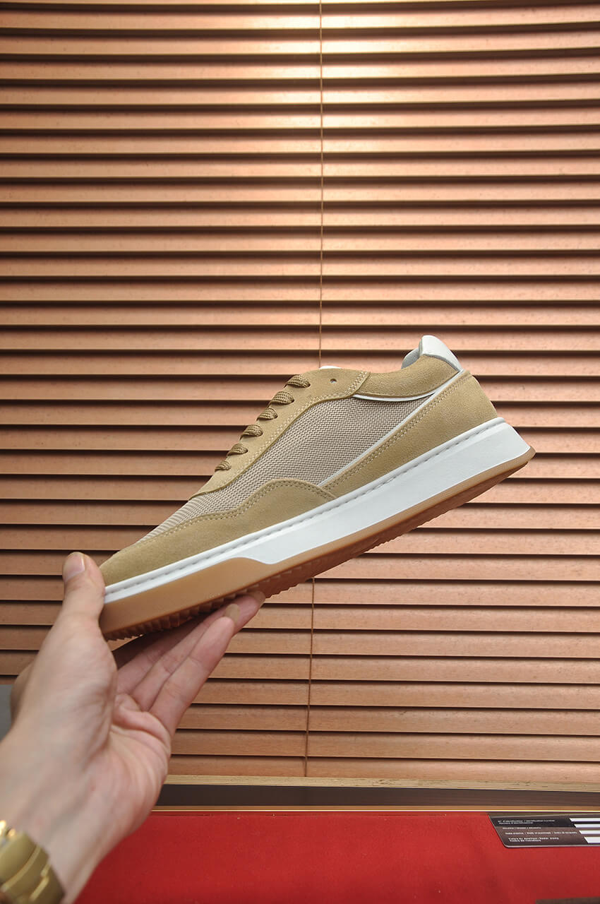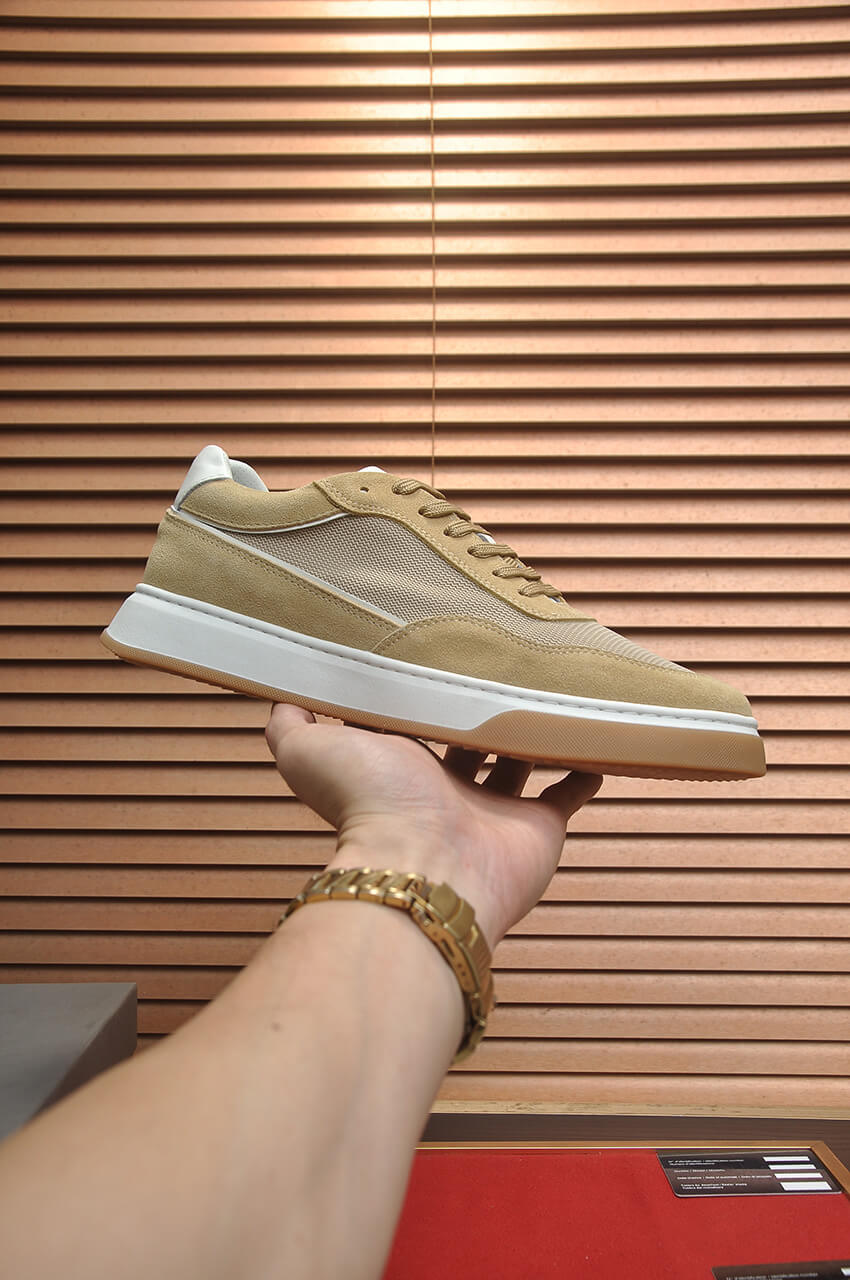 - Ideal Summer Material Mix: The low-top design features a premium blend of soft Tan/Beige suede paneling and a refined canvas or mesh-like insert, ensuring maximum breathability and a sleek, sophisticated look.