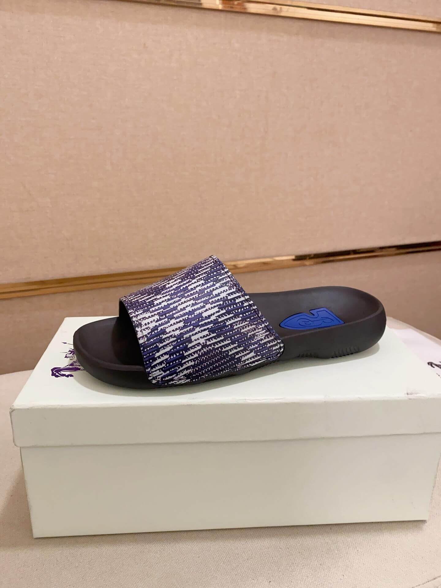 Discover effortless style with the Burberry Purple Check Dive Slides, a modern take on casual luxury. These slip-on sandals showcase a vibrant blue hue across their wide strap, which is intricately contrasted with Burberry’s iconic check pattern, adding a sophisticated textural element. Designed for comfort and convenience, they feature a molded footbed and durable construction, making them an ideal choice for poolside relaxation or refined everyday wear. A subtle yet distinct Burberry crest logo is debossed on the footbed, confirming the brand’s heritage.
