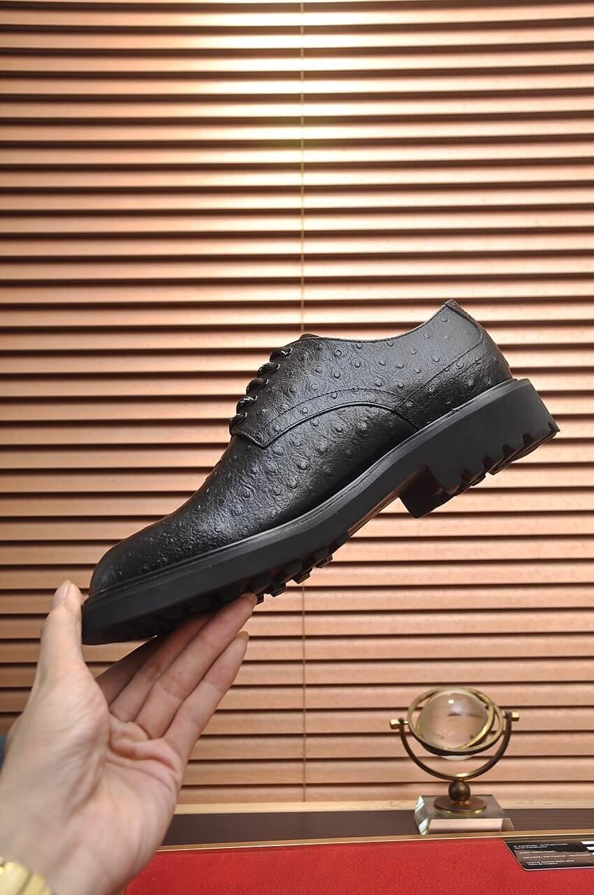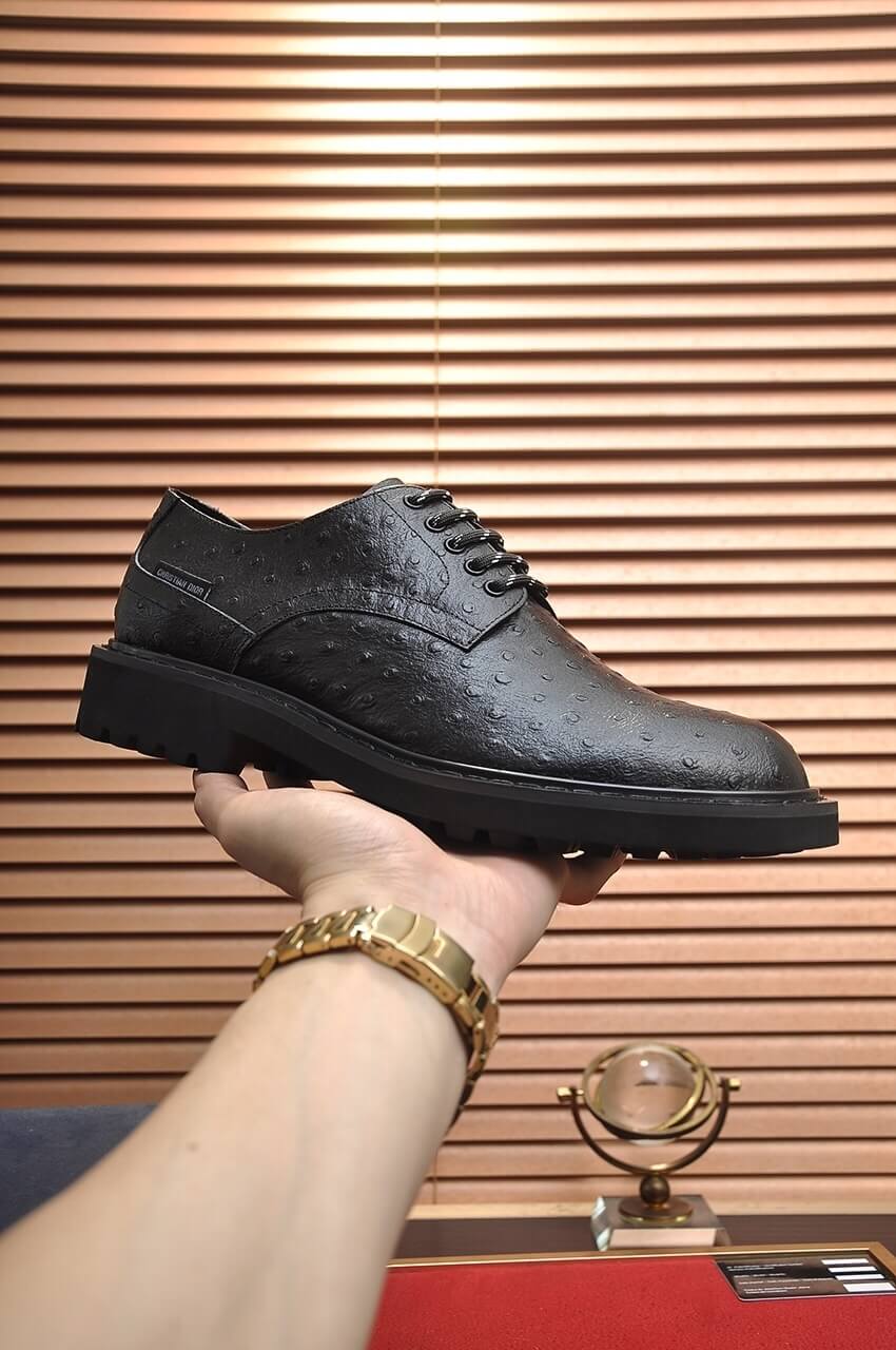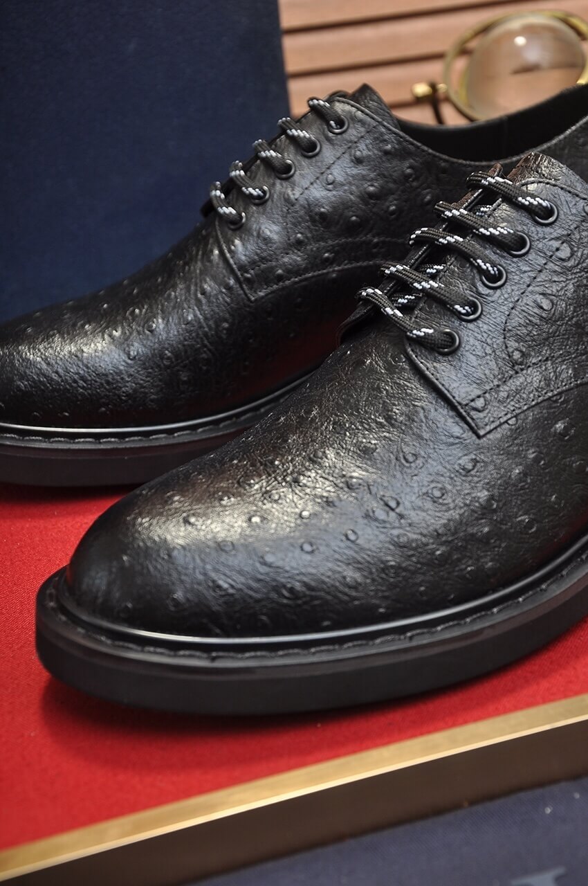 Make a bold yet refined statement with the Dior Casual Derby Shoes Ostrich-Print Leather Black. Produced to a high-quality 1:1 original factory standard using imported original materials, this shoe perfectly combines the structure of a classic Derby with a luxurious, exotic texture and a modern, monochromatic finish.