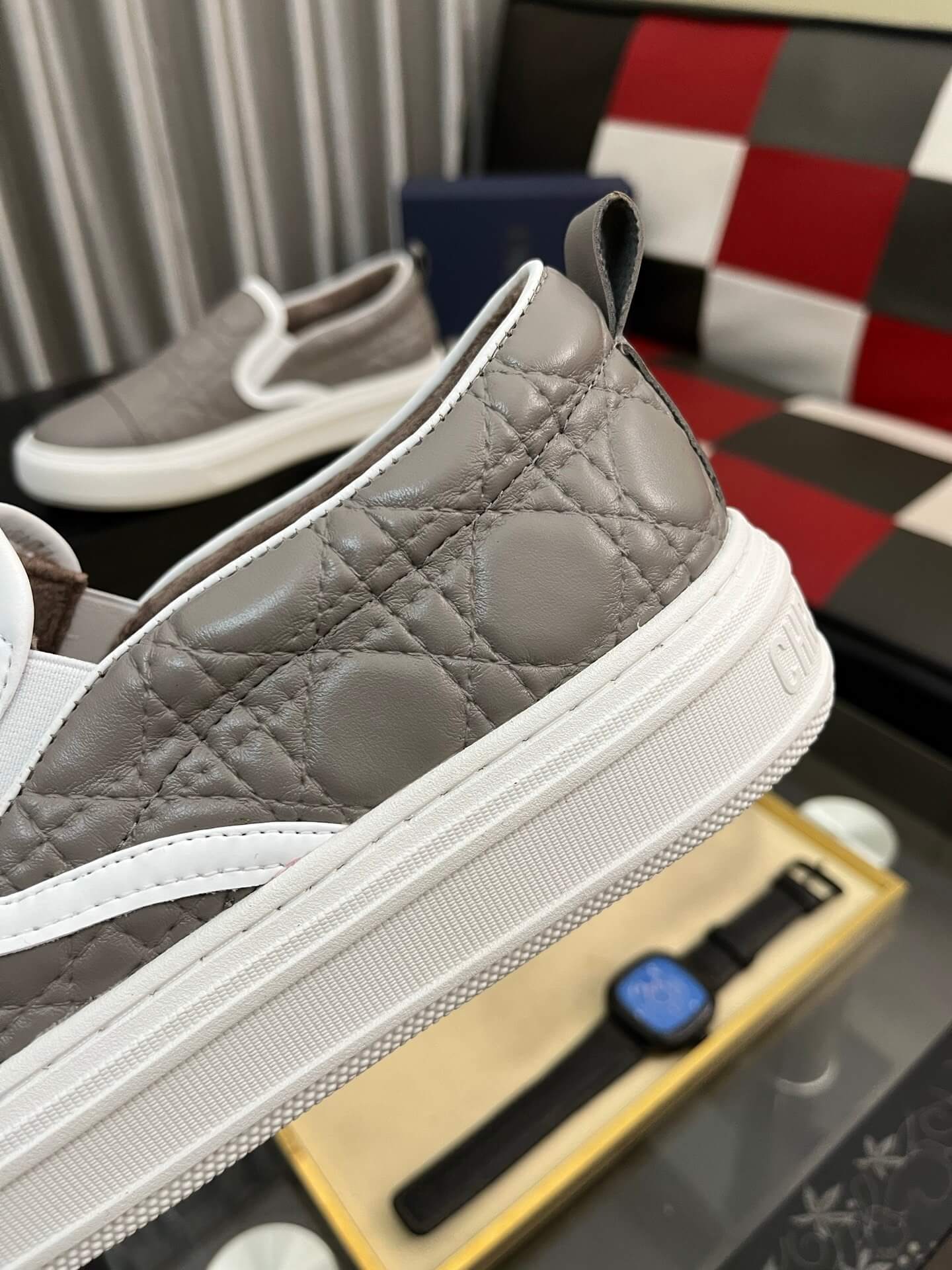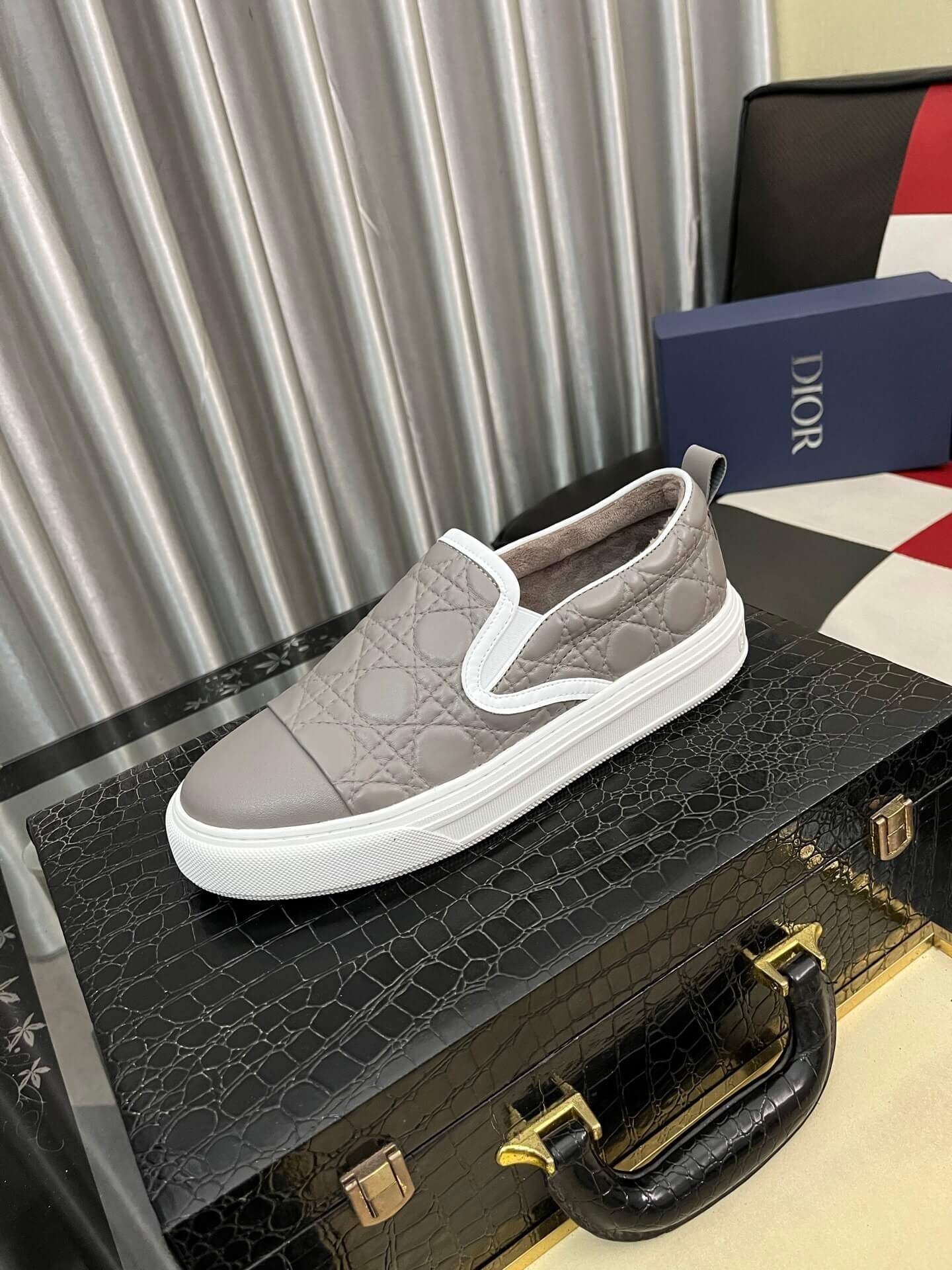 Iconic Oblique Pattern: The side panels and upper are detailed with the iconic Dior Oblique canvas in a subtle white and light gray tone, providing refined texture and clear brand identification.