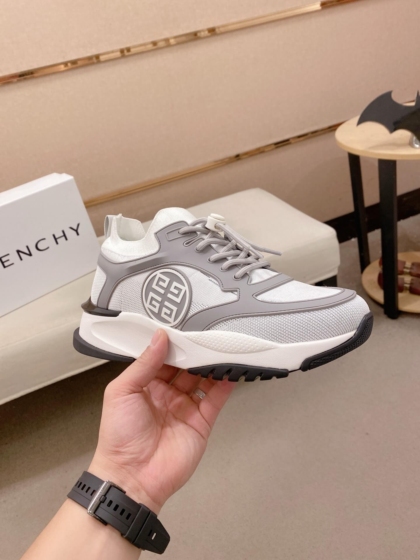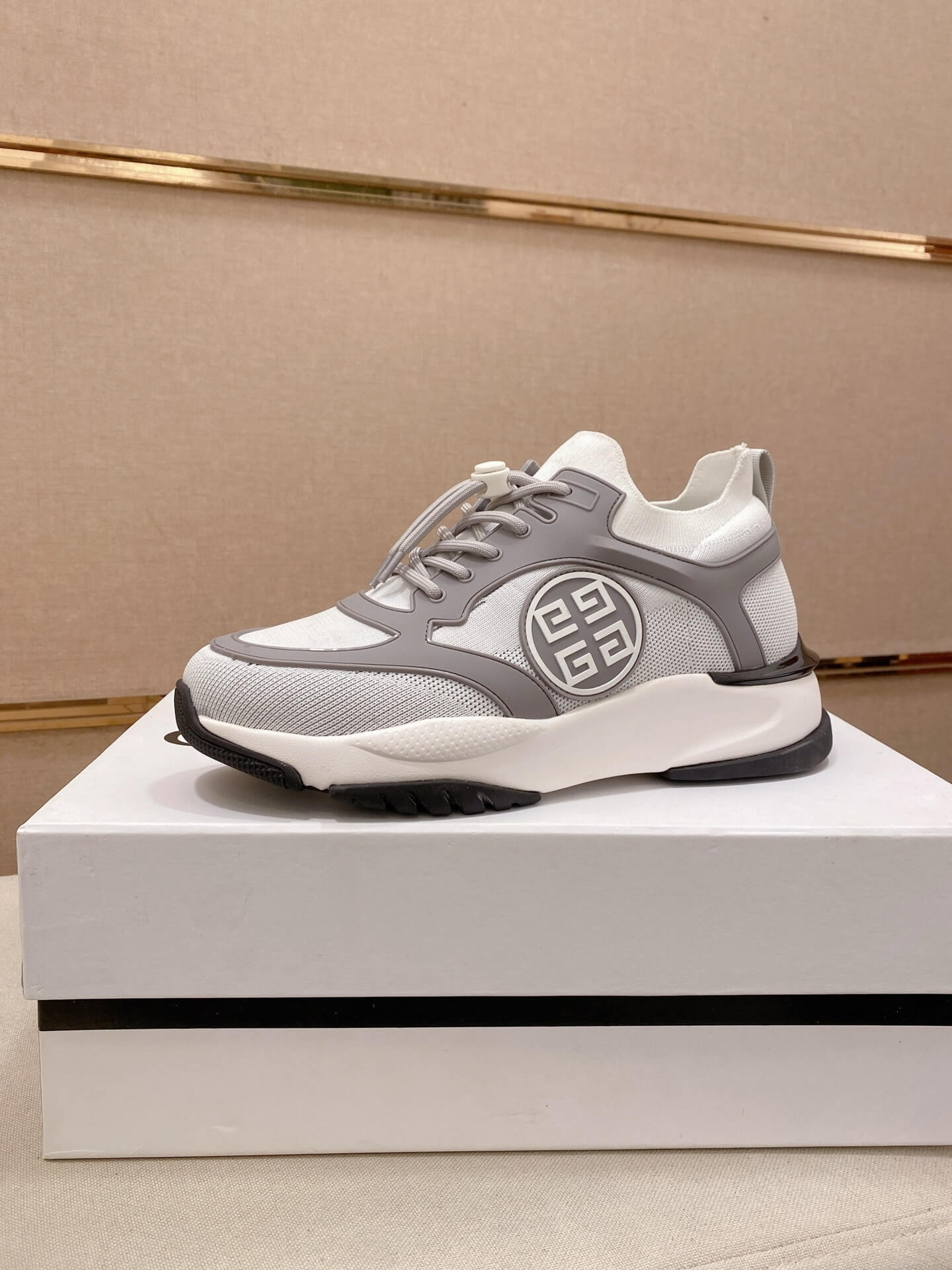 The ultimate fusion of athletic performance and high-fashion luxury, the Givenchy G-Move Runner Sneaker is presented in a sophisticated Gray and White mixed material construction. This sleek design features the distinctive circular 4G or G-Move logo and a comfortable, multi-layered sole, making it an instantly recognizable and highly versatile piece of Givenchy footwear for the contemporary collector.