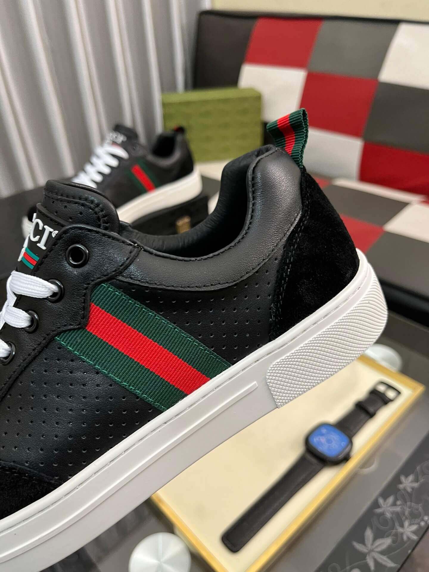 - Signature Web Stripe: The unmistakable green and red Web stripe adorns the sides, instantly identifying these sneakers with Gucci’s renowned heritage.