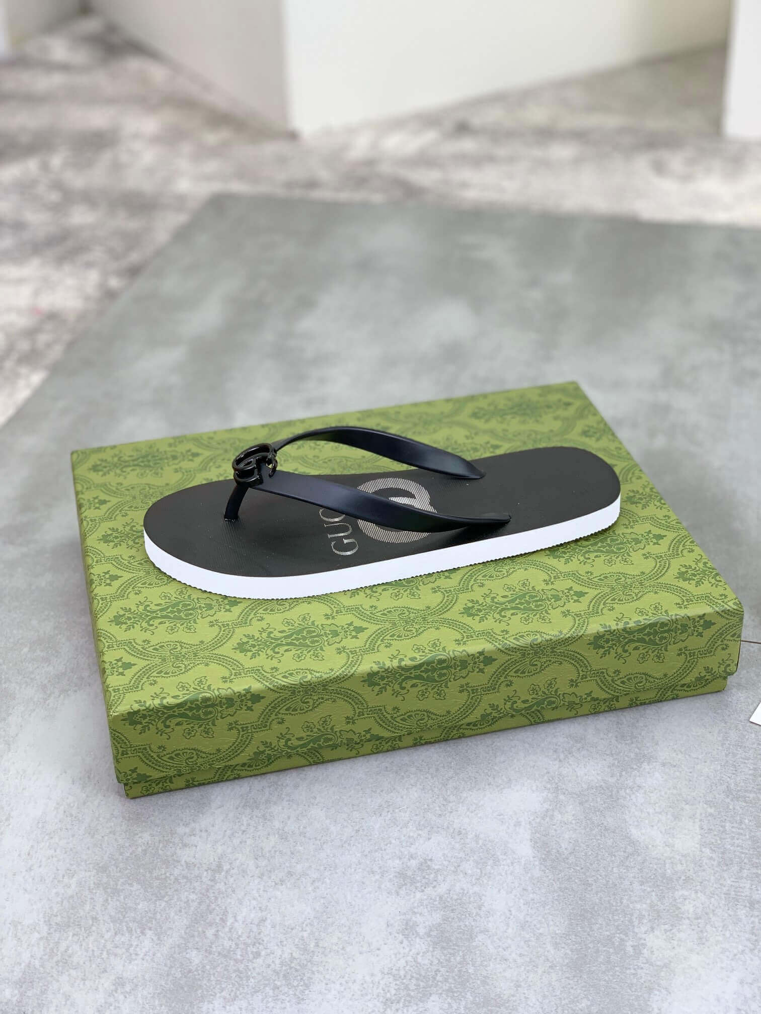 Embrace the effortless sophistication of timeless cool. These sandals are more a sleek declaration of understated luxury, designed to infuse your relaxed moments with an undeniable sense of refined style. Imagine the supple black strap gracefully contouring your foot, the iconic Interlocking G subtly glinting, a whisper of discerning taste with every confident step.