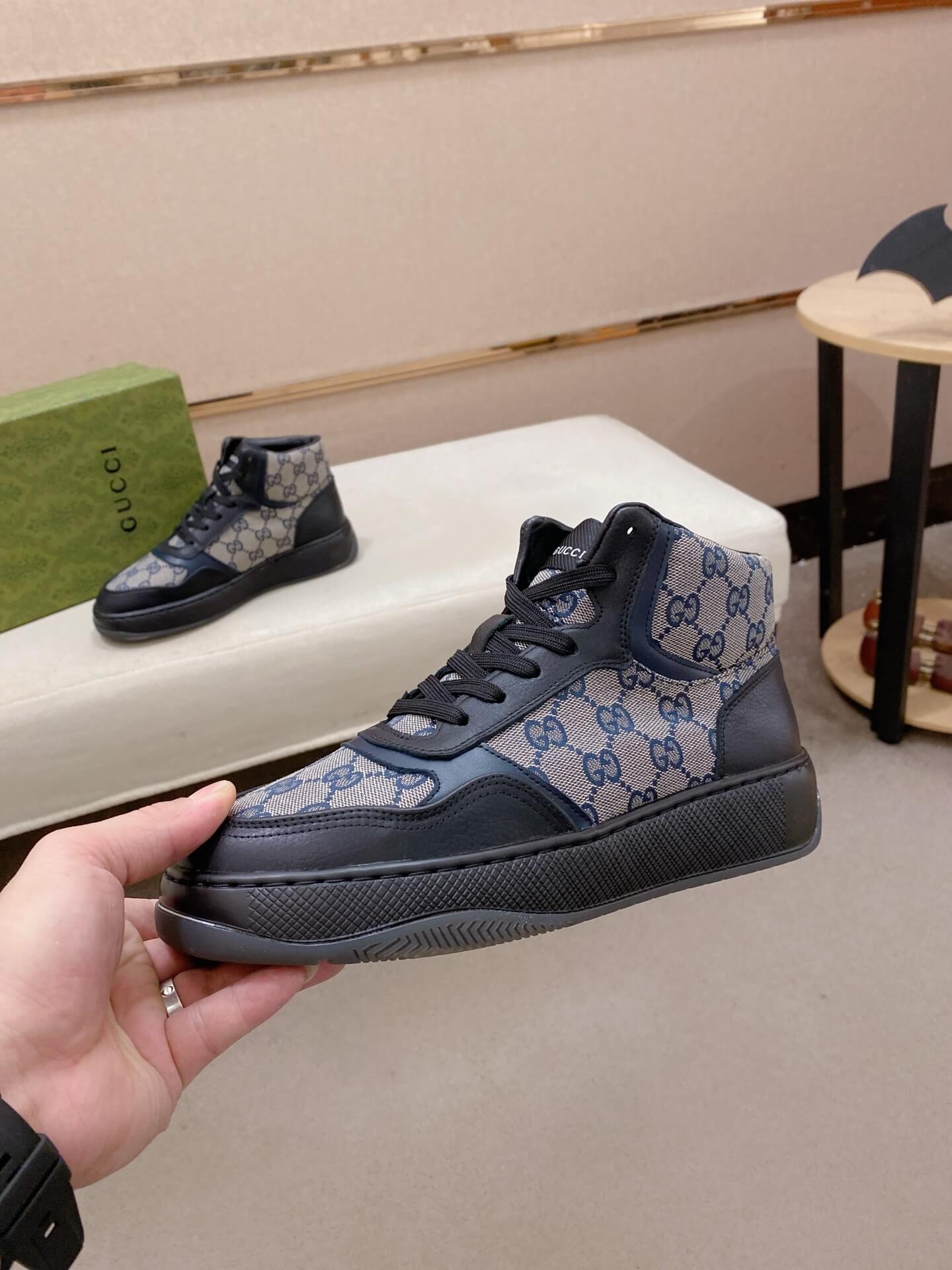 This piece is a timeless representation of Italian luxury and design prowess. The GG Canvas High-Top Sneaker is an enduring investment piece that brings the unmistakable quality and prestige of Gucci to your daily rotation.