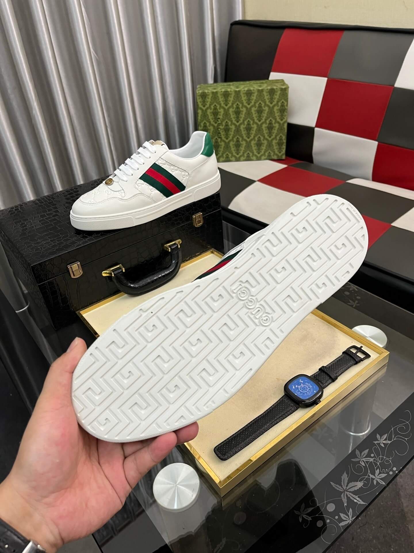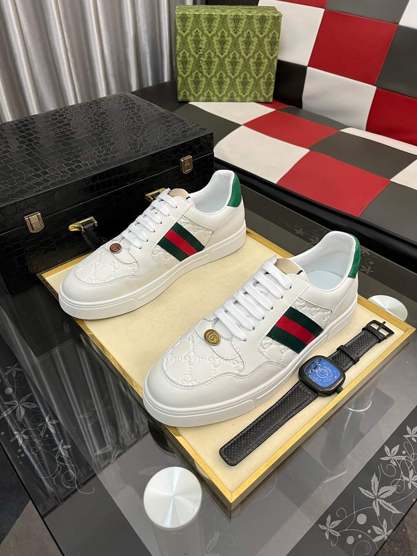 Gucci Branding: Features discrete branding, including the signature interlocking ‘GG’ logo charm near the laces, a hallmark of Gucci craftsmanship.