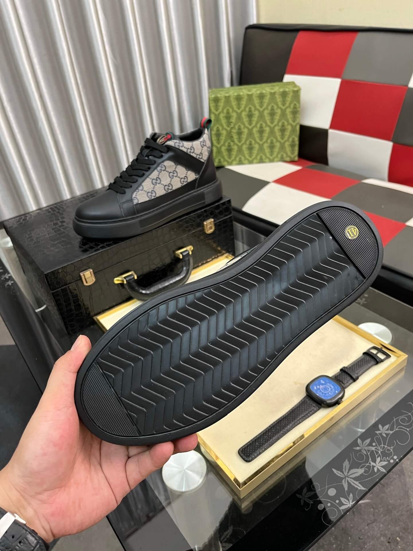 - Iconic Monogram: Features the timeless Gucci GG Supreme canvas (Beige/Ebony) on the body of the shoe, providing a clear statement of luxury heritage.