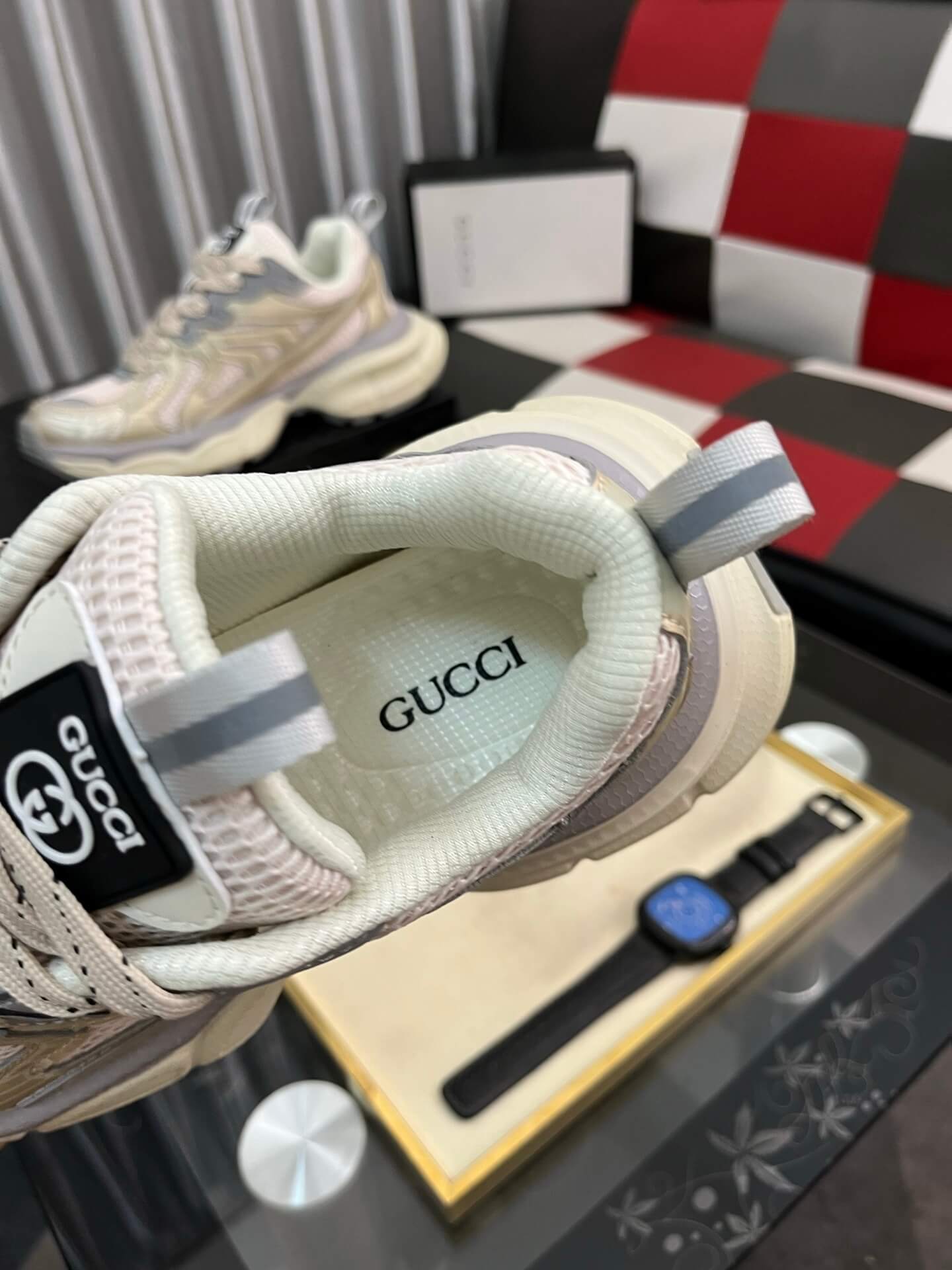 - Subtle Branding: Gucci logo subtly integrated on the tongue, maintaining focus on the complex texture and contemporary form.