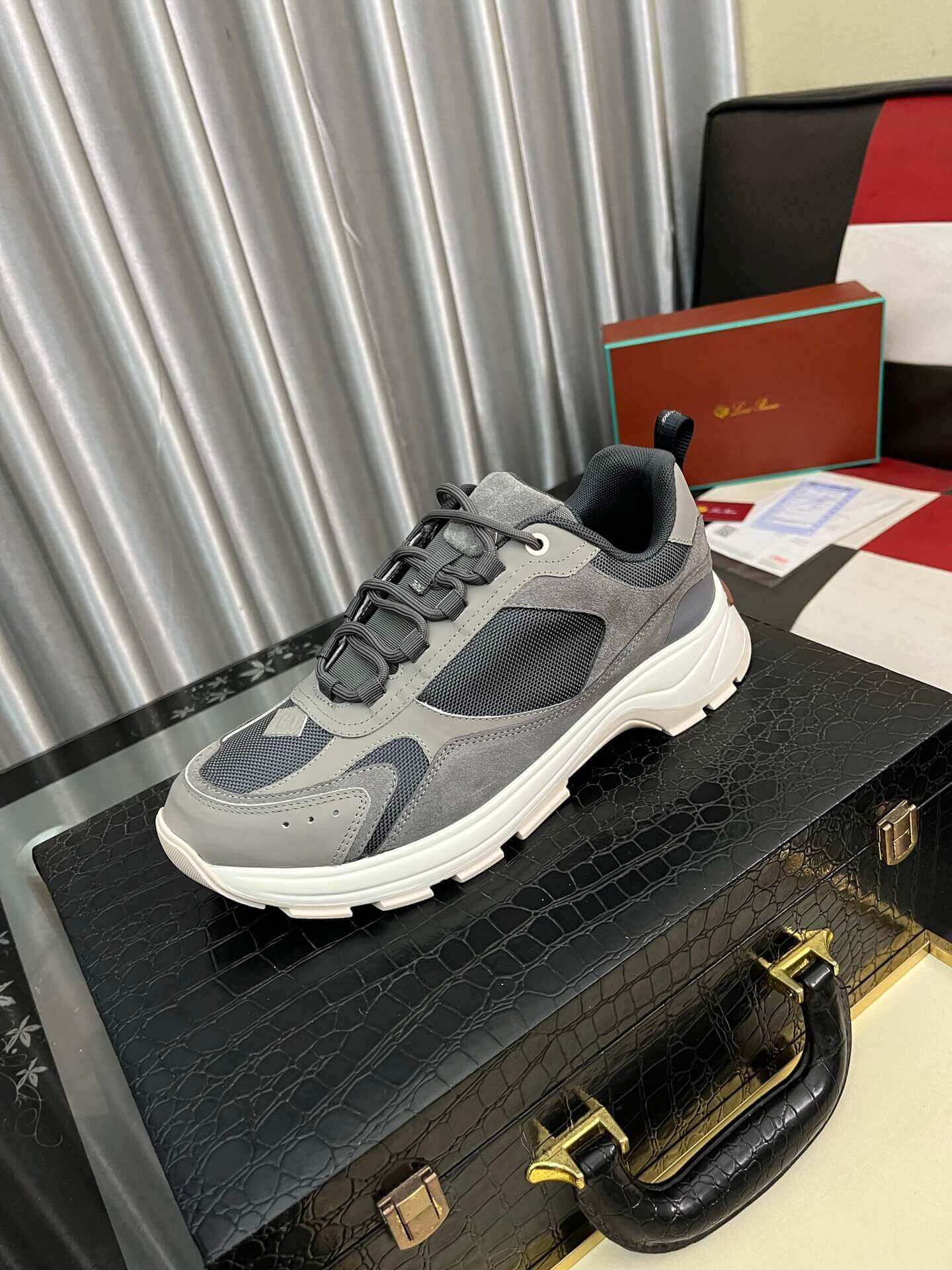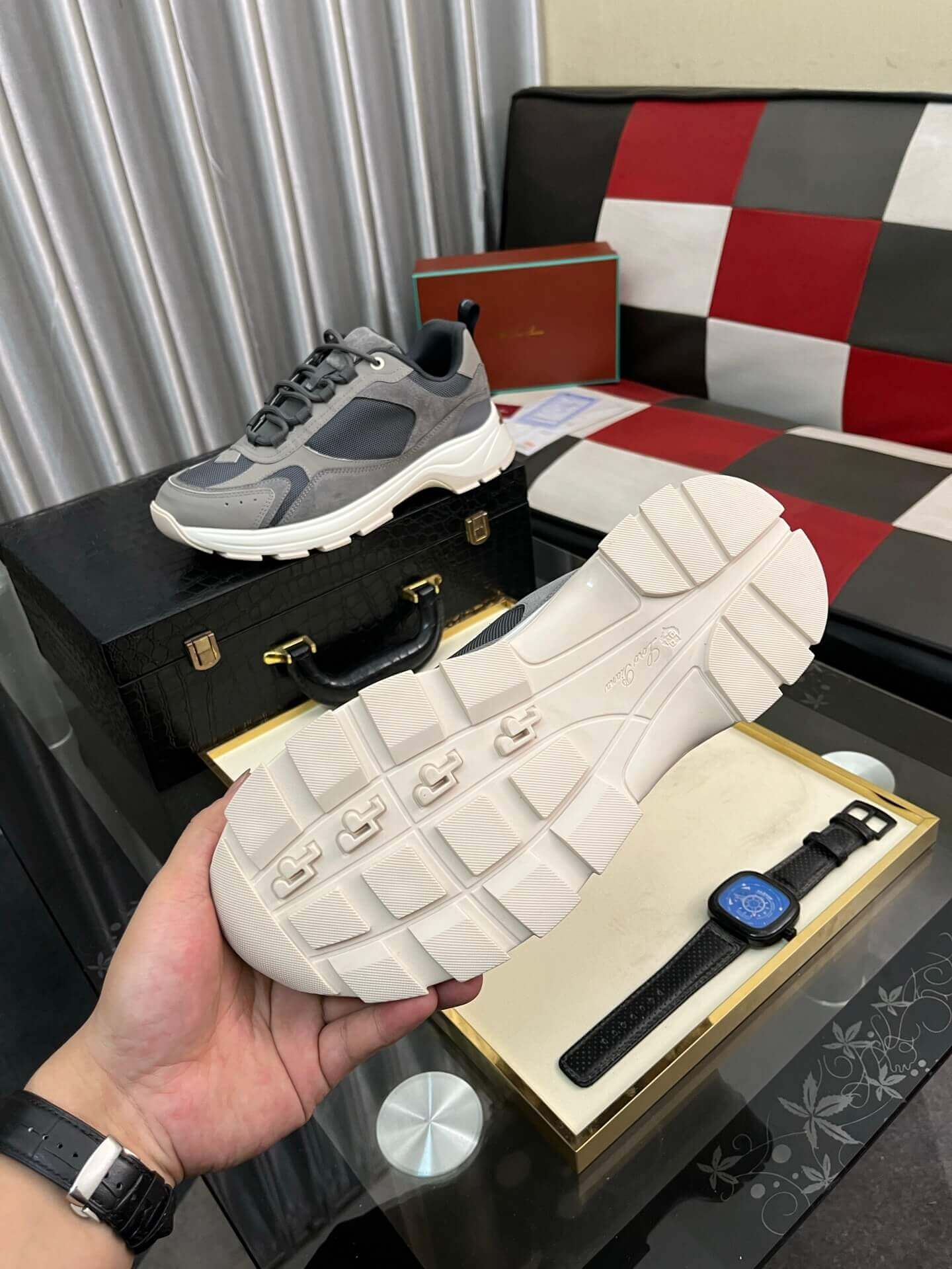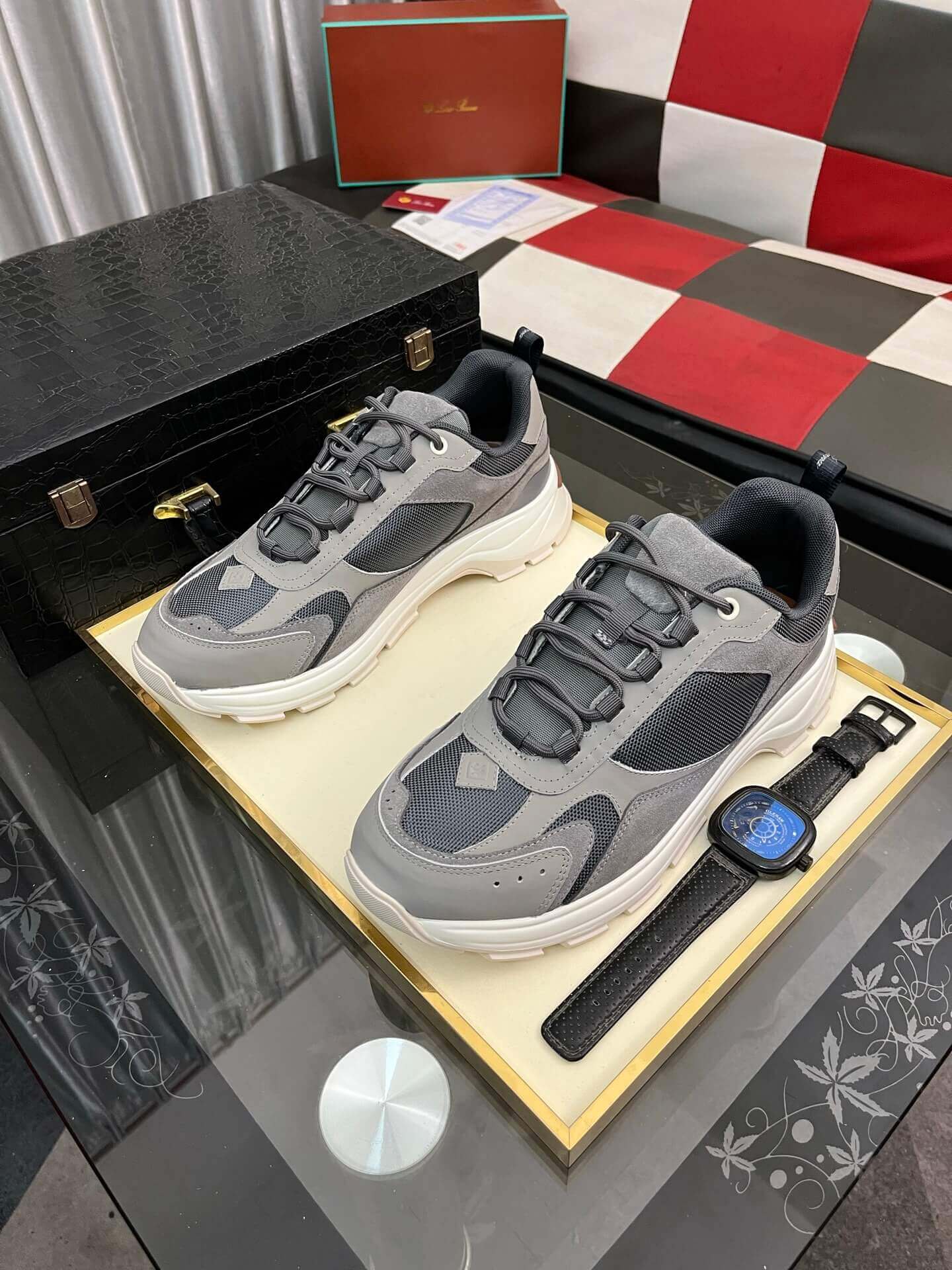 Discover the essence of understated luxury with these exquisite Loro Piana Cairn Walk sneakers. Presented in a versatile palette of grey tones, these trainers masterfully combine sumptuous suede with advanced technical mesh for a refined yet athletic aesthetic. Designed for the discerning individual, their ergonomic silhouette and robust, cushioned sole provide exceptional support and comfort for every step. A testament to Loro Piana’s unwavering commitment to premium materials and impeccable craftsmanship, these sneakers are the ultimate foundation for a stylish and comfortable experience, whether navigating urban landscapes or embracing the serenity of the outdoors.