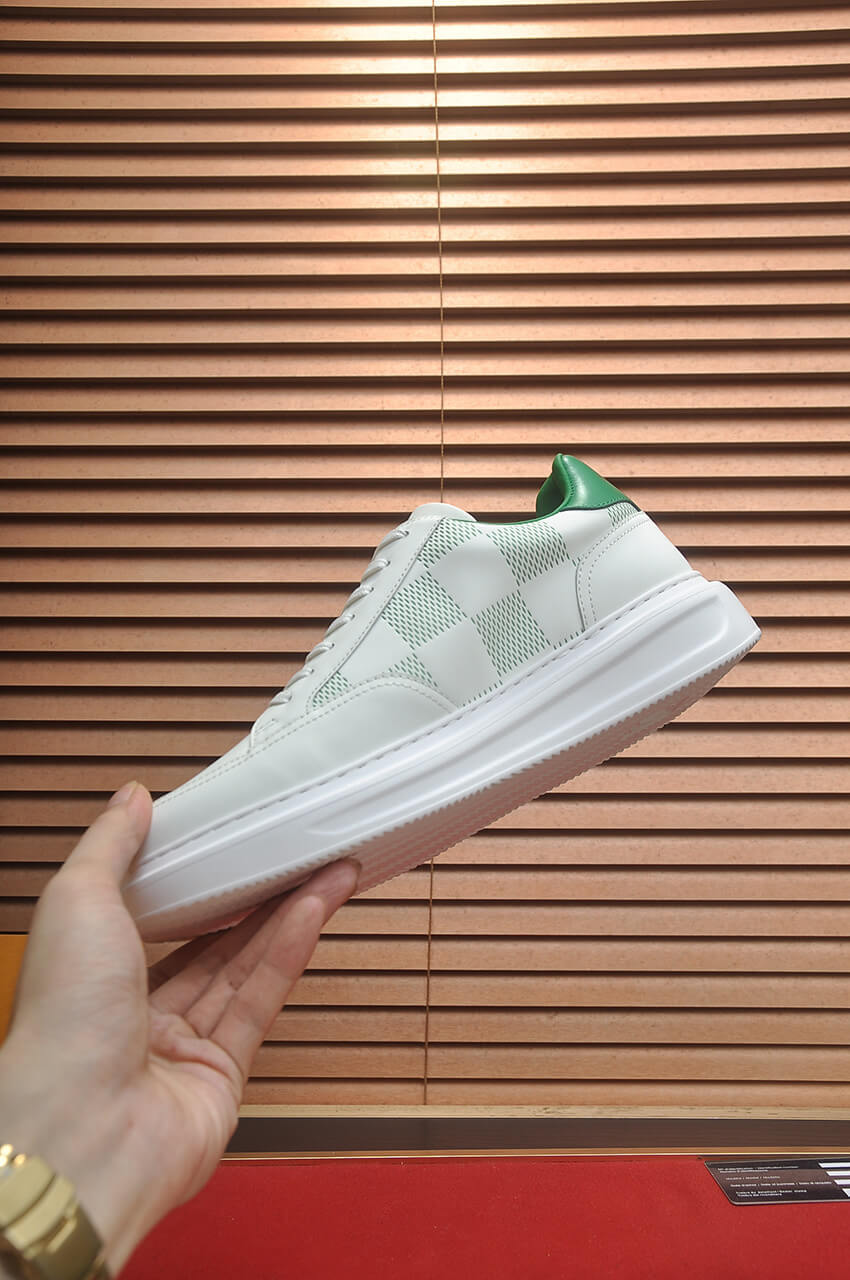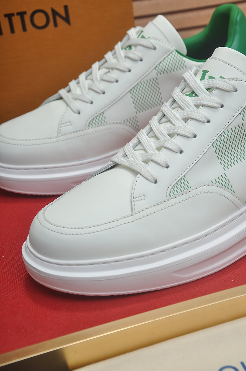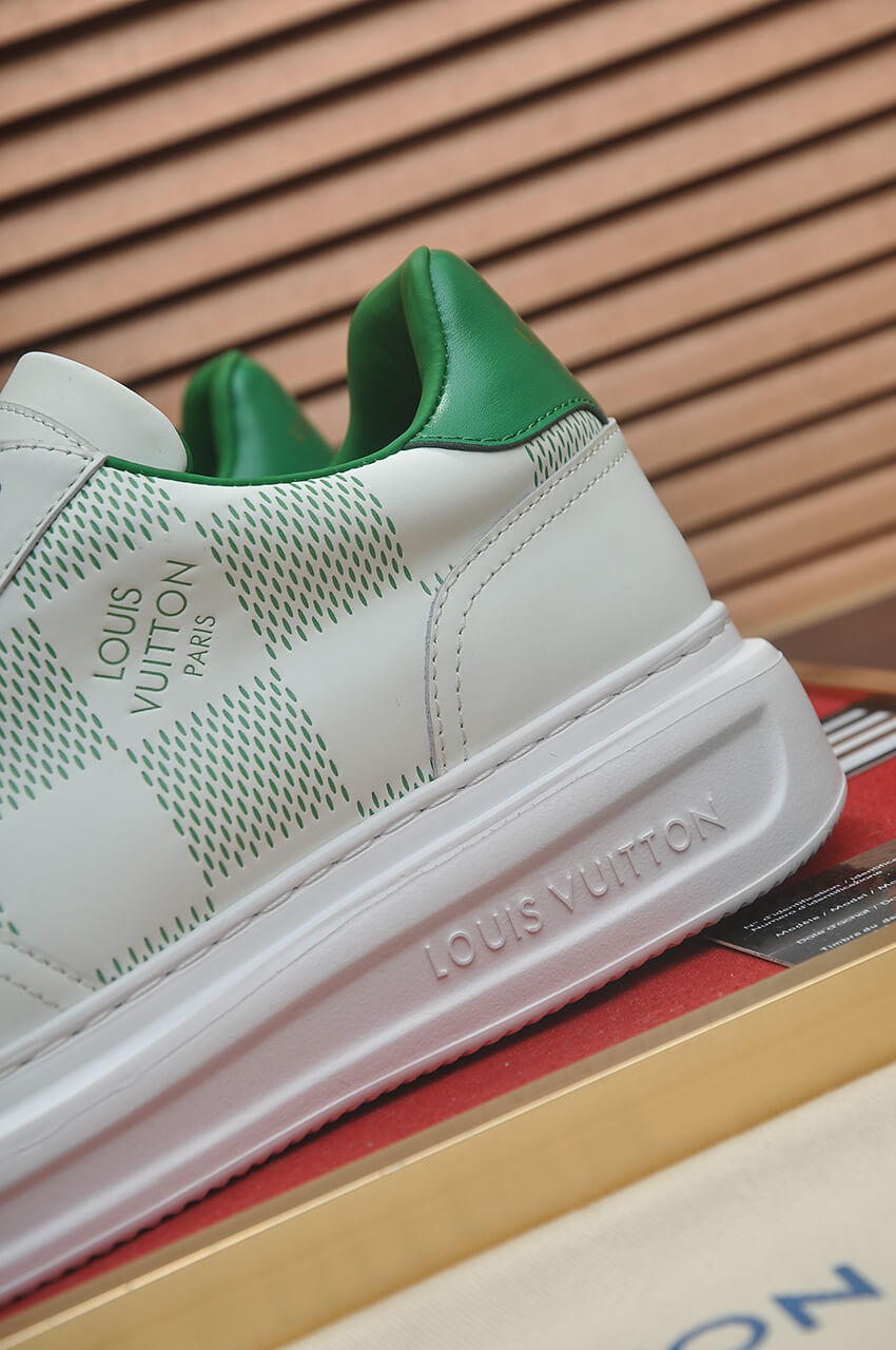Arriving straight from the menswear runway, the Louis Vuitton Beverly Hills Sneaker in White with Green Accent offers a fresh, vibrant twist on a luxury classic. This timeless sneaker combines a relaxed, low-top silhouette with superior craftsmanship, making it a stylish and worthwhile purchase for the season.