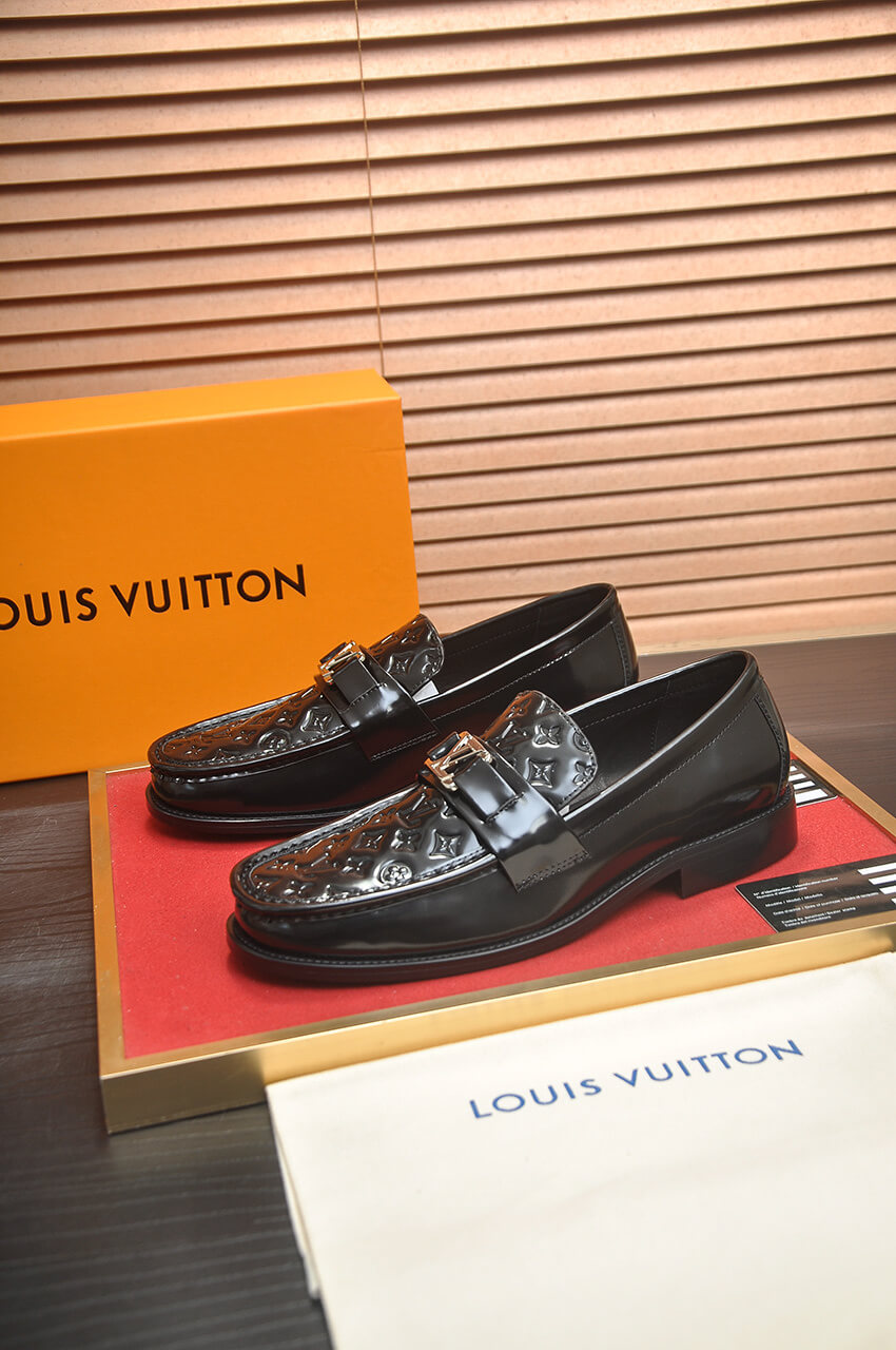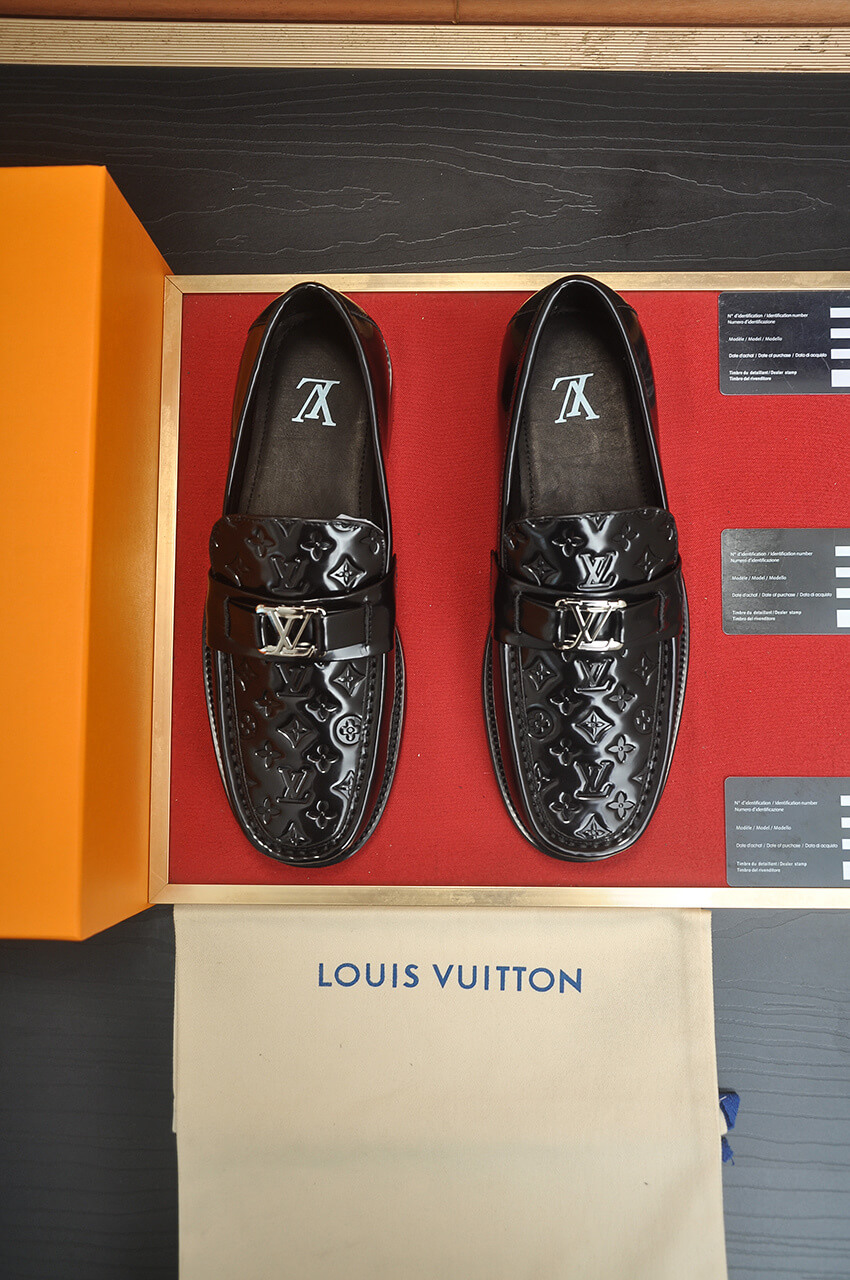 Make an unforgettable impression with the Louis Vuitton Major Loafer in Black Patent Monogram Leather. This sophisticated business formal shoe is defined by its dazzling high-shine finish, making it the definitive choice for black-tie affairs, grand events, and the most refined business settings.