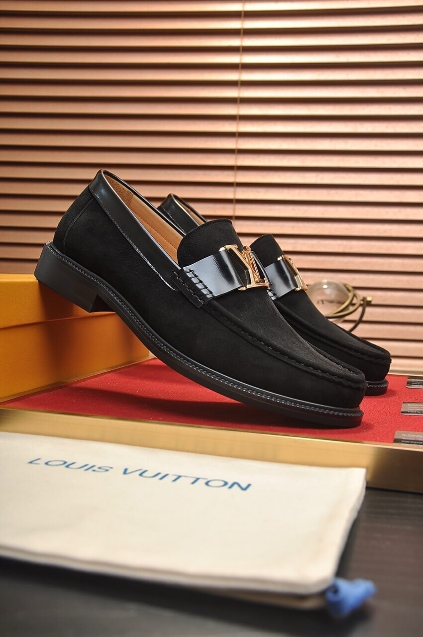 Introducing the sophisticated Louis Vuitton Major Loafer Suede LV Initials Black, a versatile business suit shoe simultaneously launched with the official collection. This style blends the rich texture of matte suede/nubuck with glossy accents and iconic LV hardware, creating a high-end, all-season shoe that radiates contemporary charm.