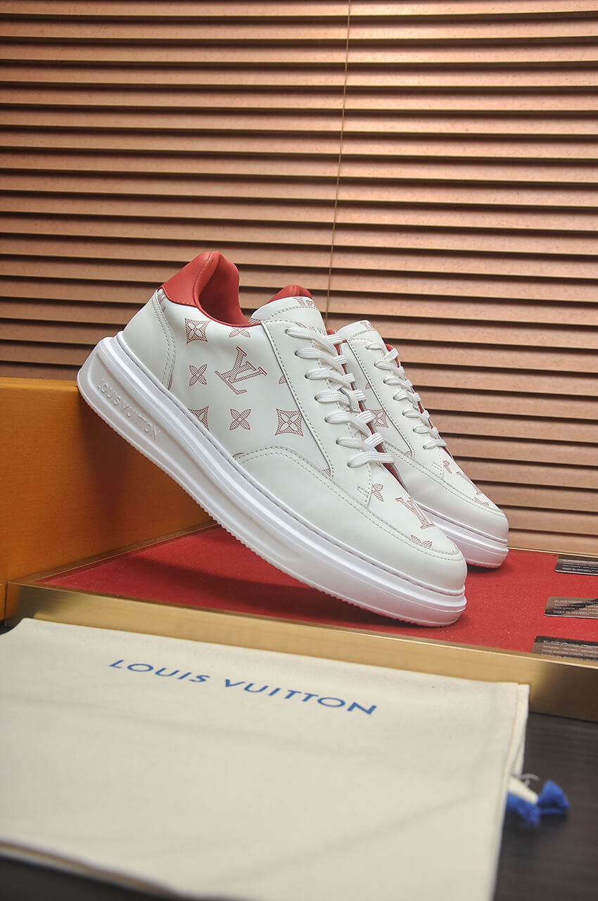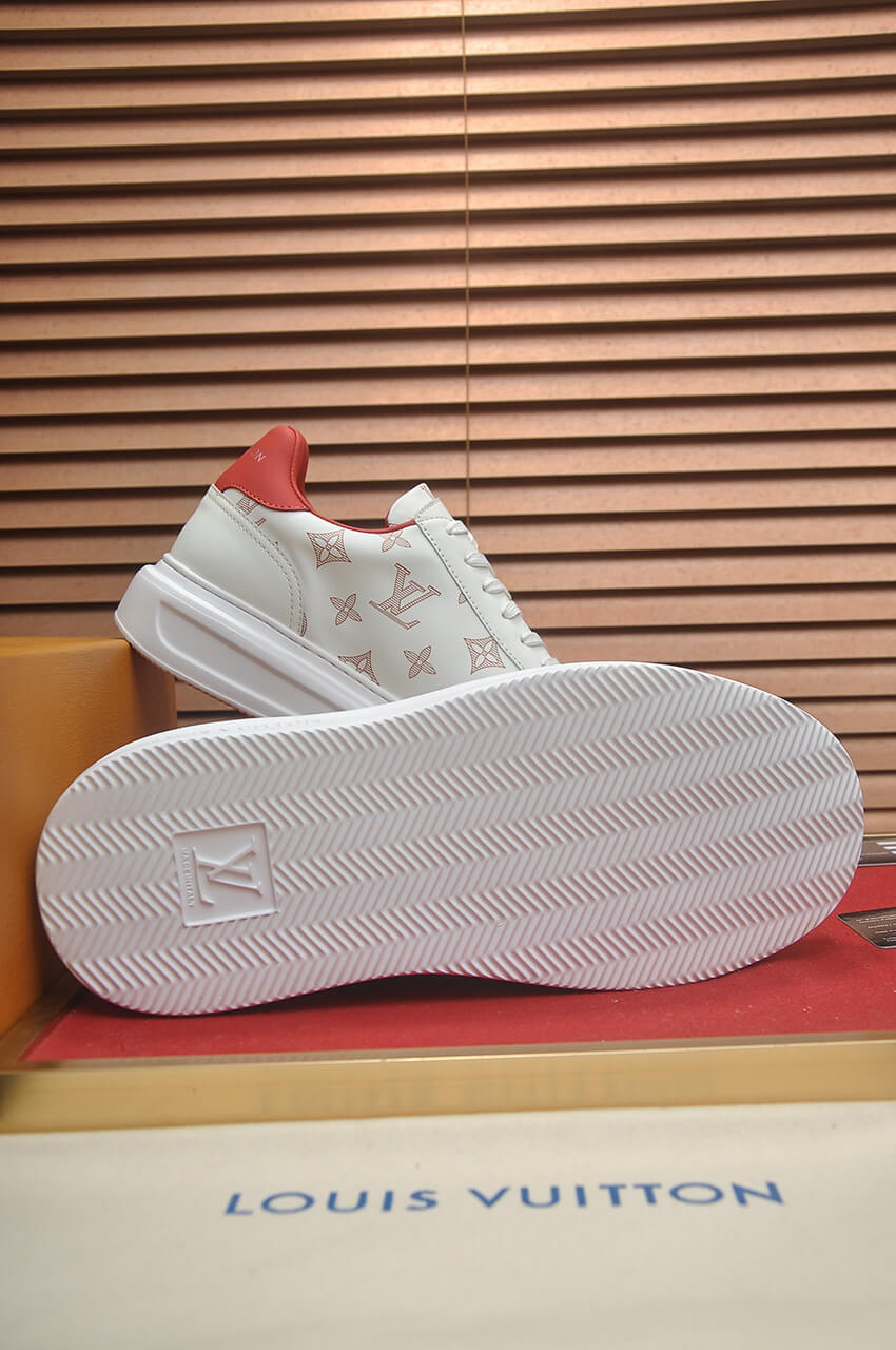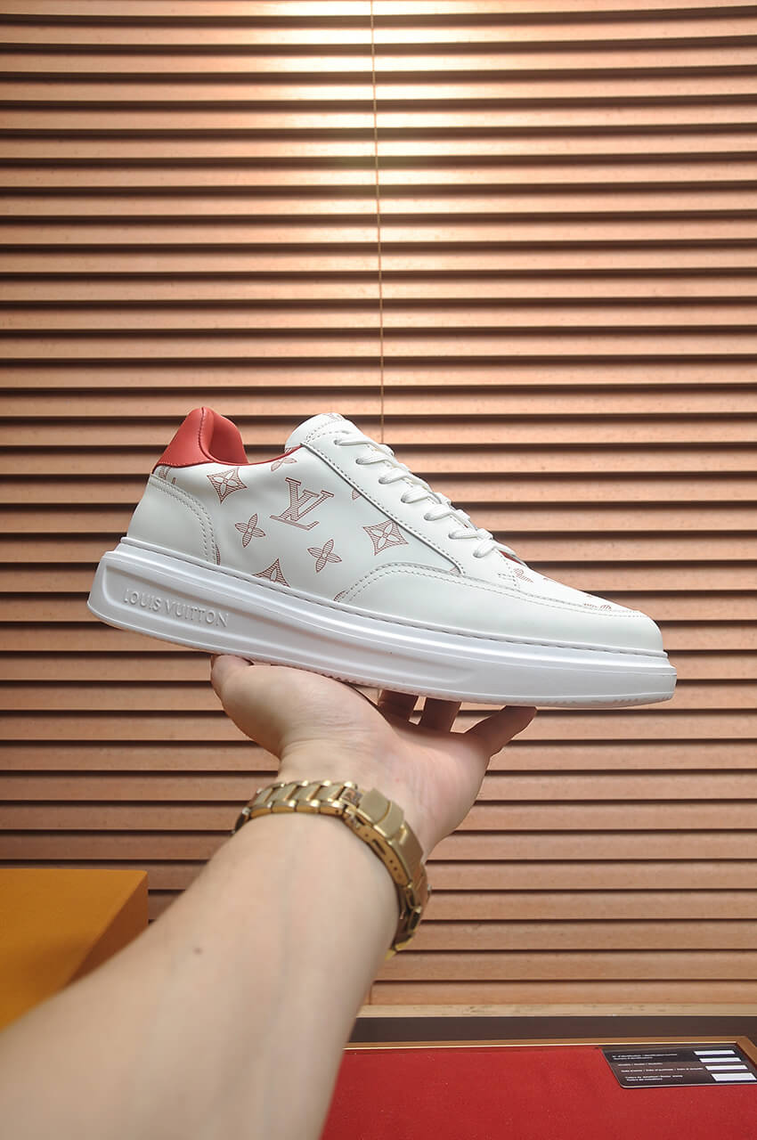Making a bold debut on the Spring/Summer menswear runway, the Louis Vuitton Beverly Hills Sneaker Monogram Red and White is the ultimate statement piece. This low-top sneaker combines the brand’s iconic subtle Monogram with a powerful splash of color, ensuring a timeless classic that offers superior quality and unparalleled comfort.