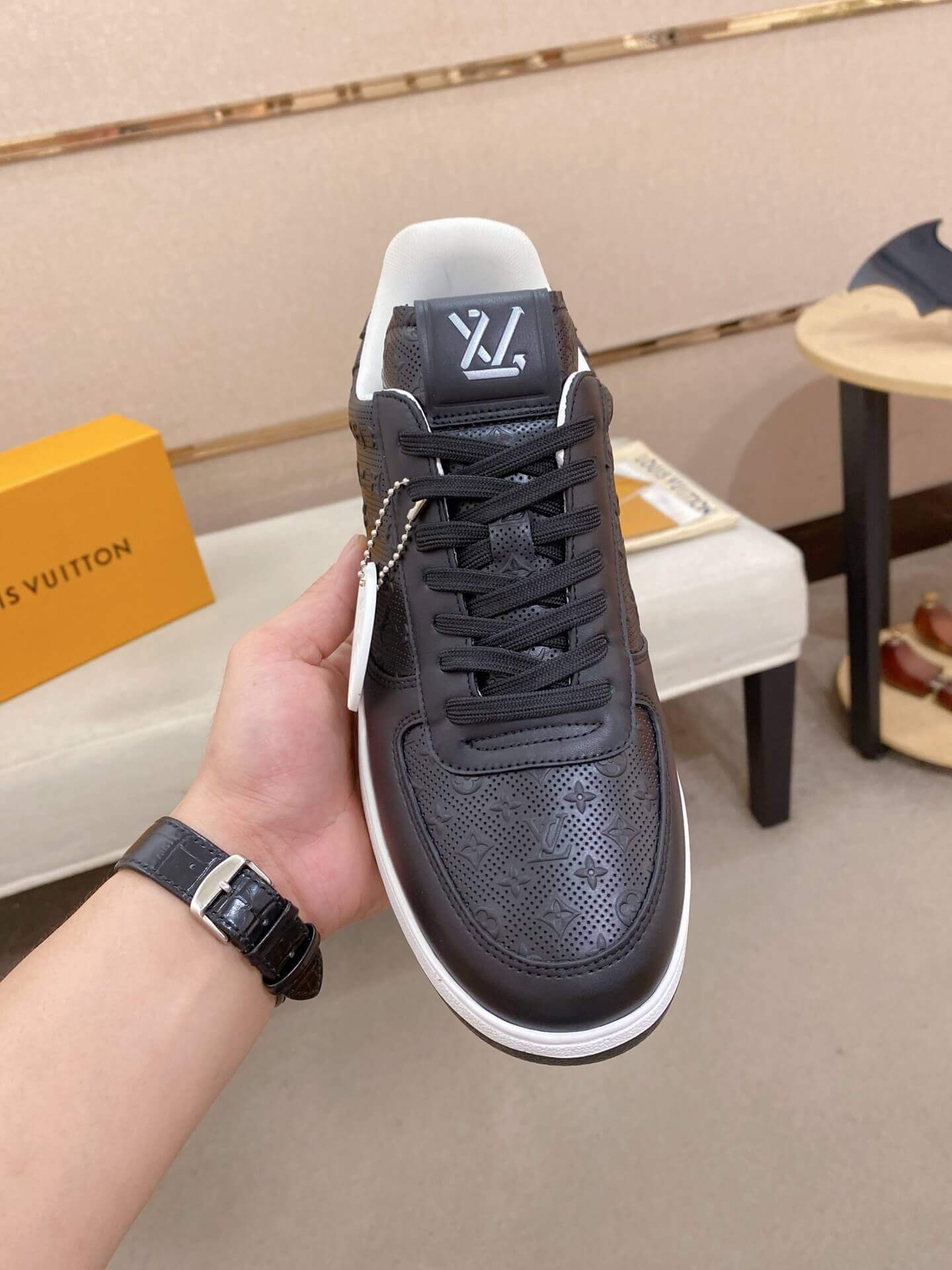 Upgrade your casual ensemble with the Louis Vuitton Rivoli Sneaker in Black. This desirable pair combines classic sporty style with iconic branding and luxurious detailing, making them a statement piece for any modern wardrobe.
