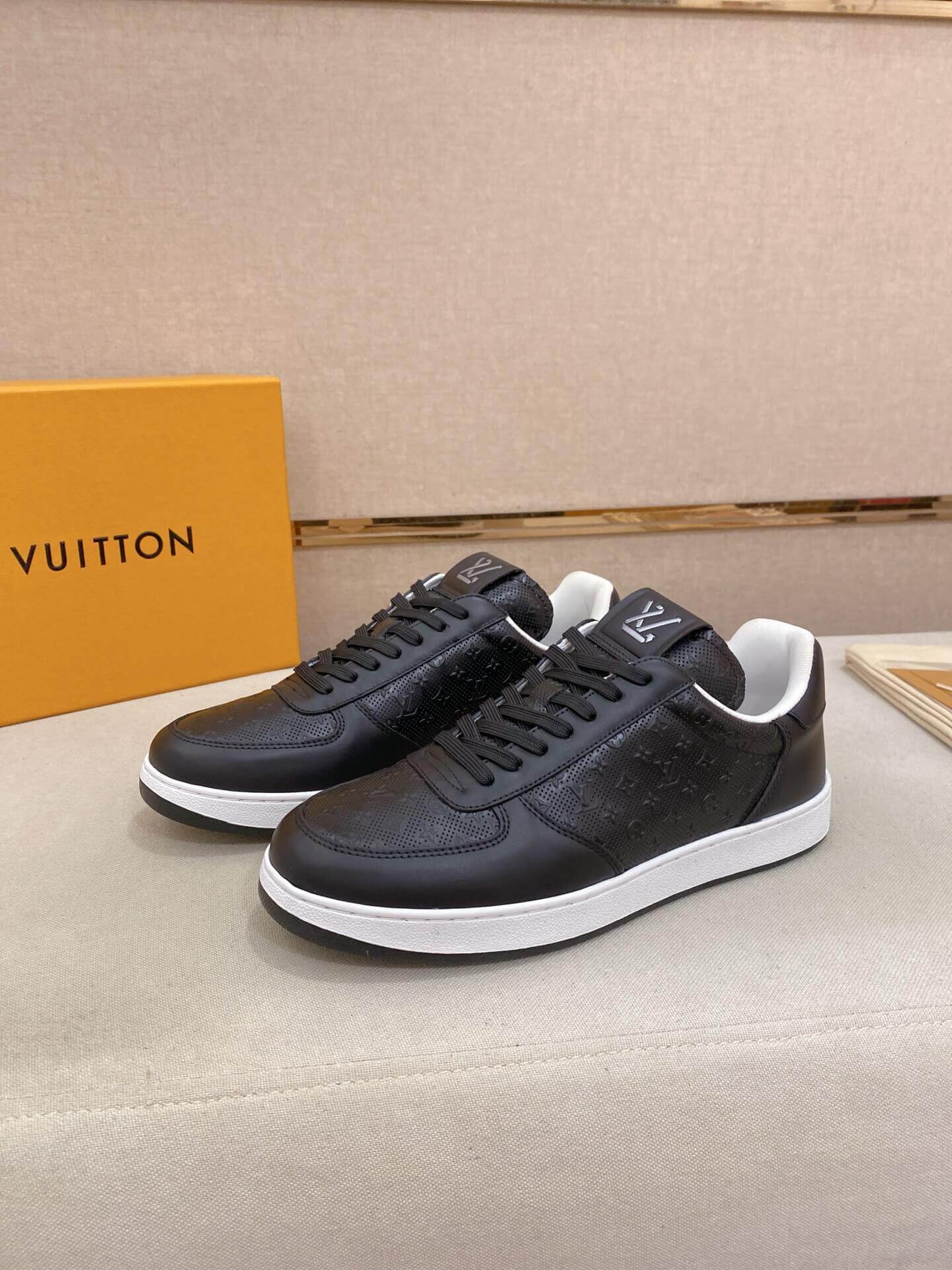Design: These low-top sneakers feature a clean, minimalist silhouette with a padded collar and tongue for comfort. The prominent tongue includes an “LV” logo.