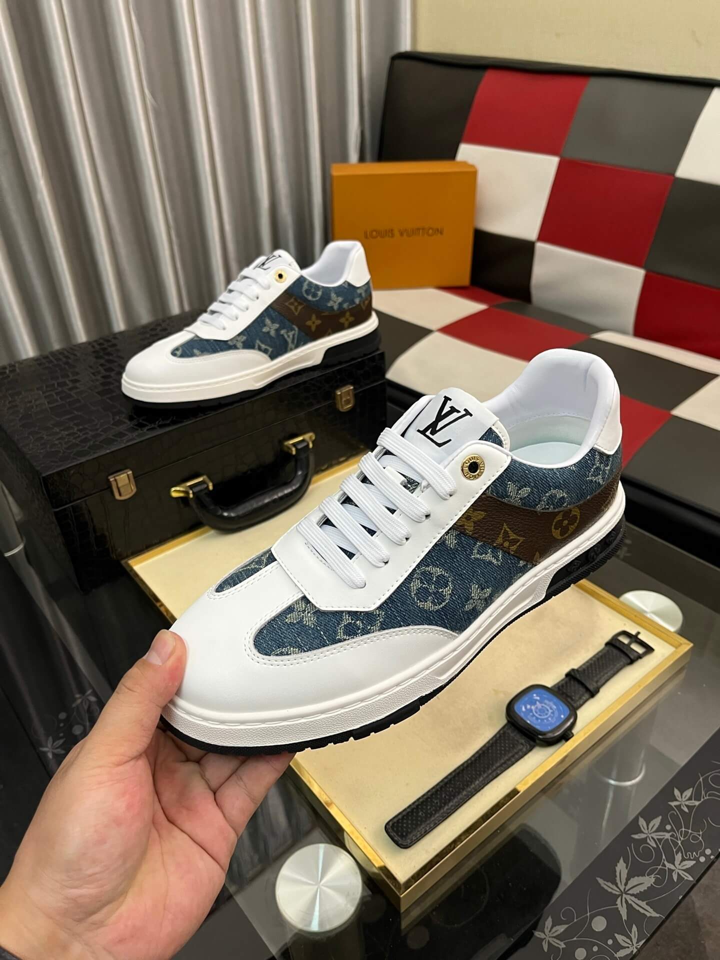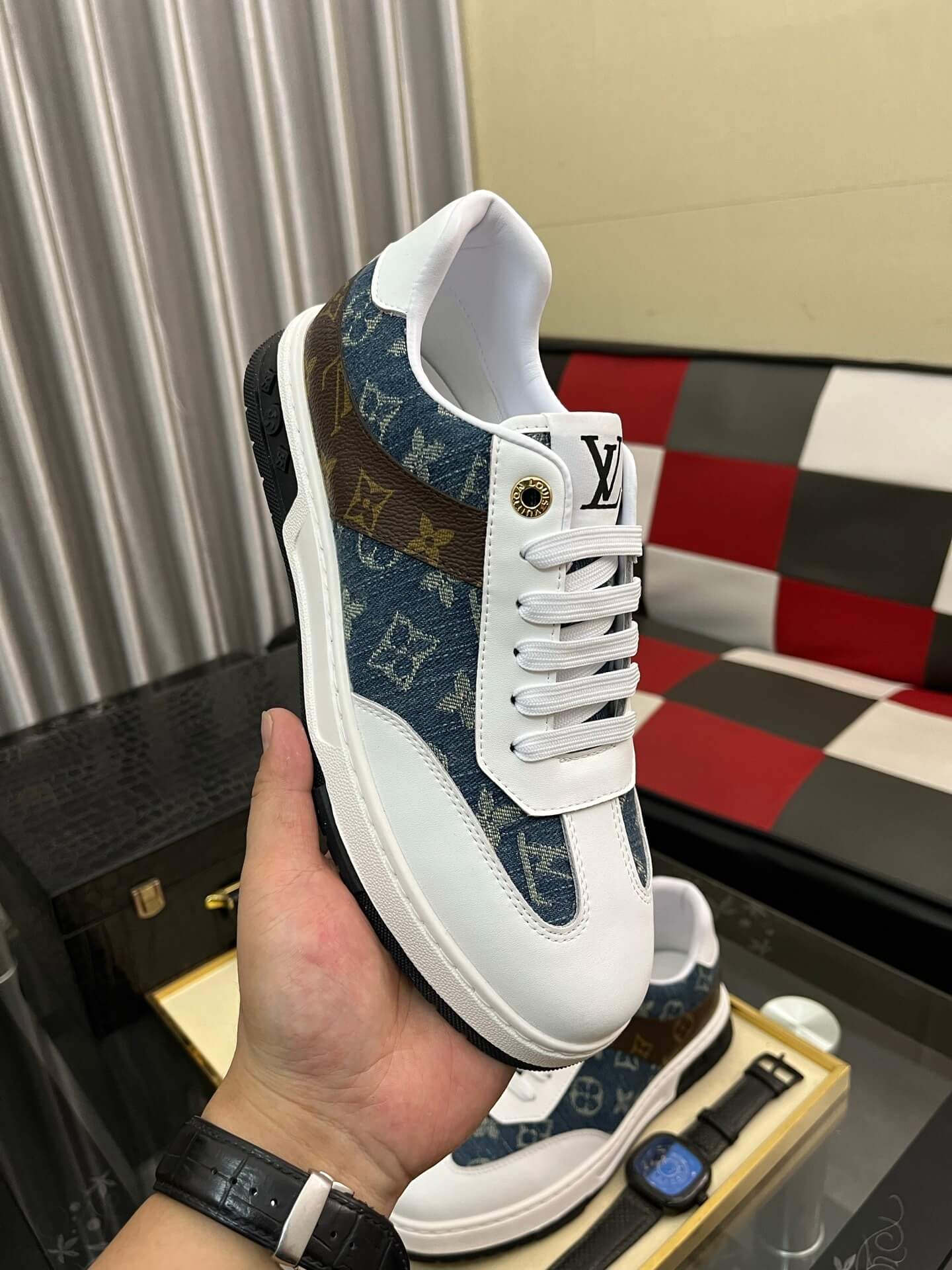 Signature LV Accents: The tongue features the discreet LV Initial and the overall design subtly incorporates the “VUITTON” logo, cementing its designer status.