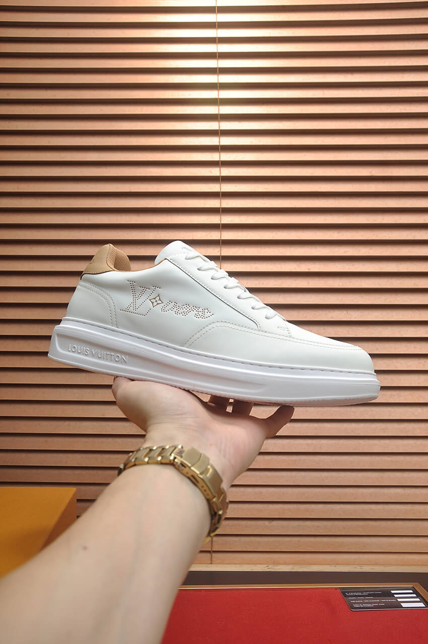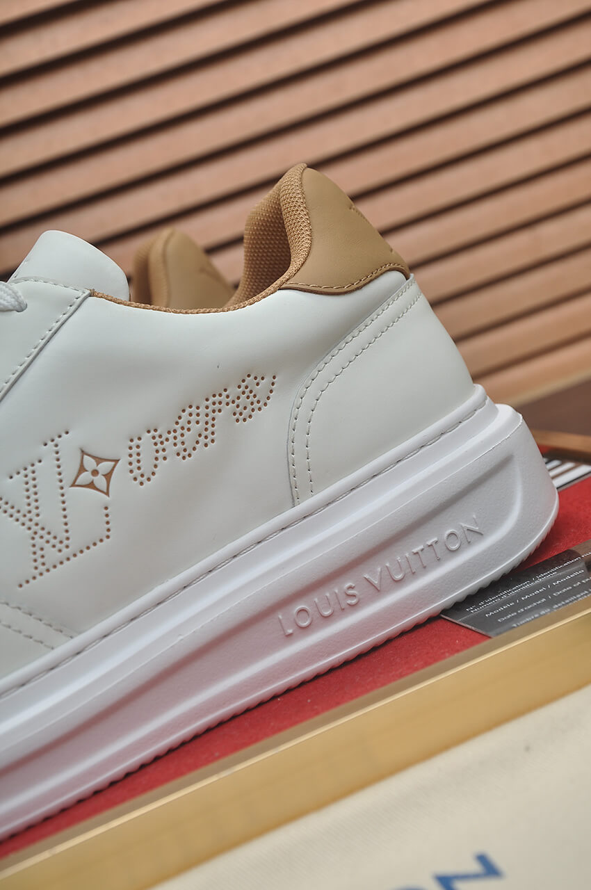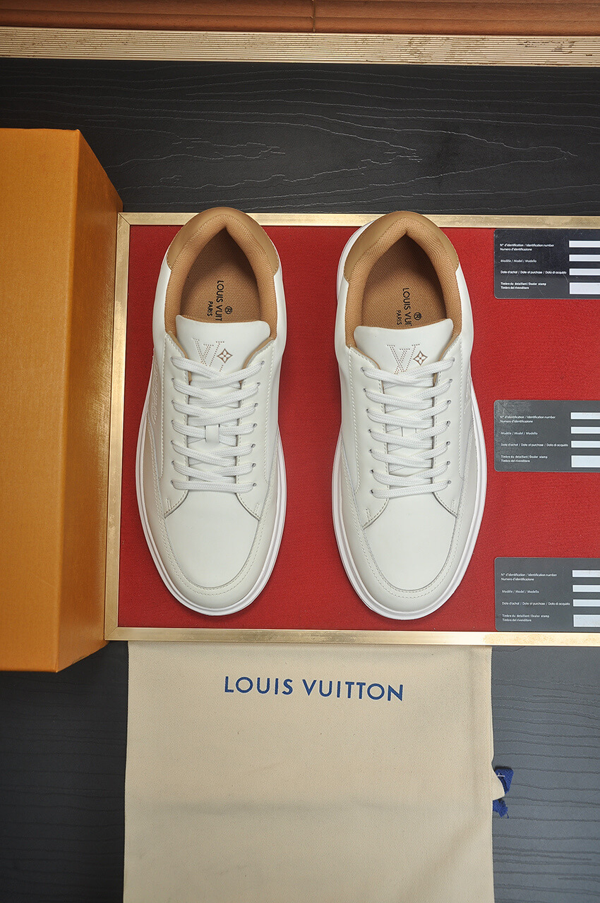 - Premium Leather Upper: Crafted from smooth, high-grade top-grain cowhide leather in pristine White, the upper features a large, stylishly embossed LV Initials logo on the side panel, highlighting the brand’s heritage.