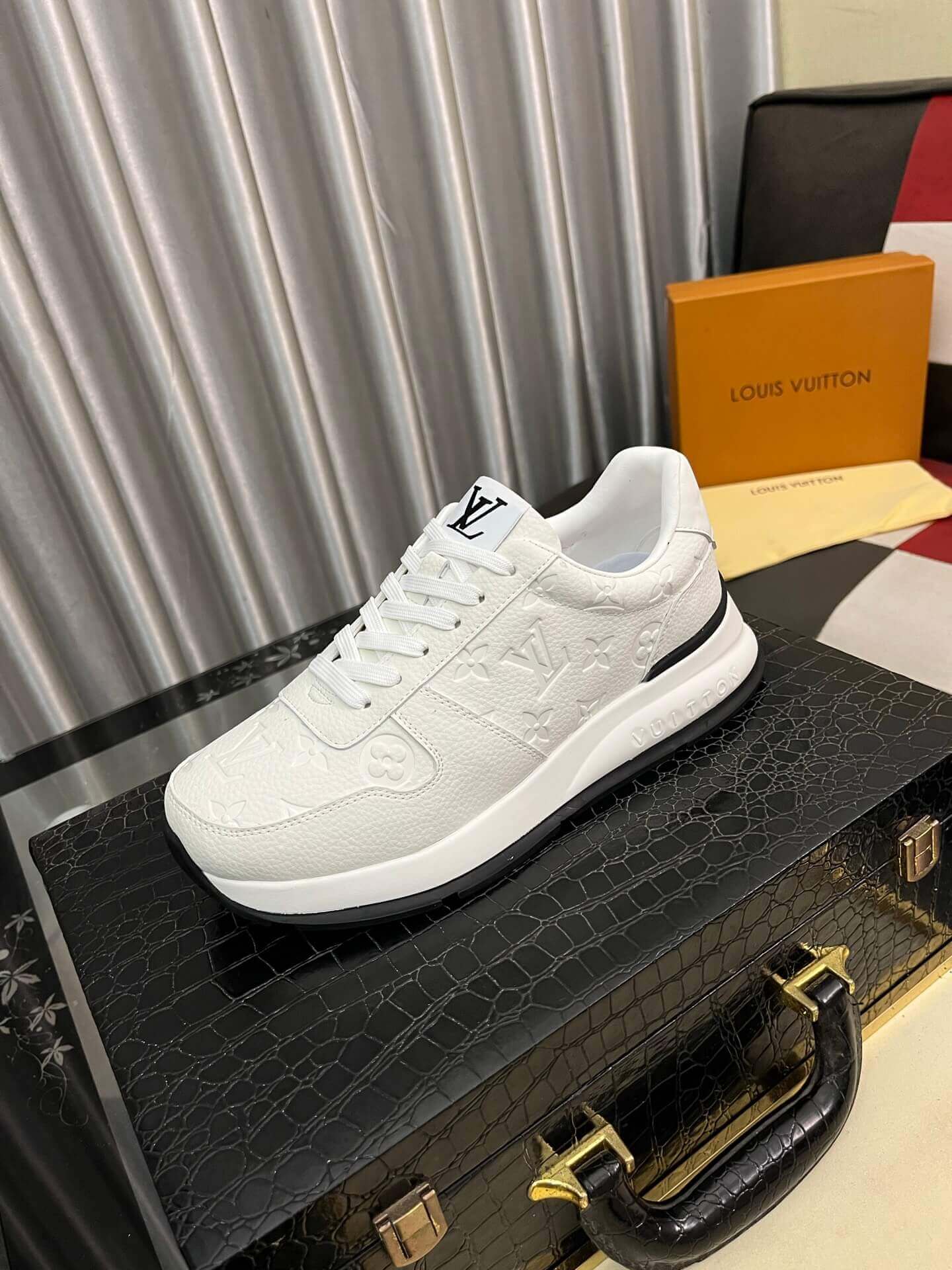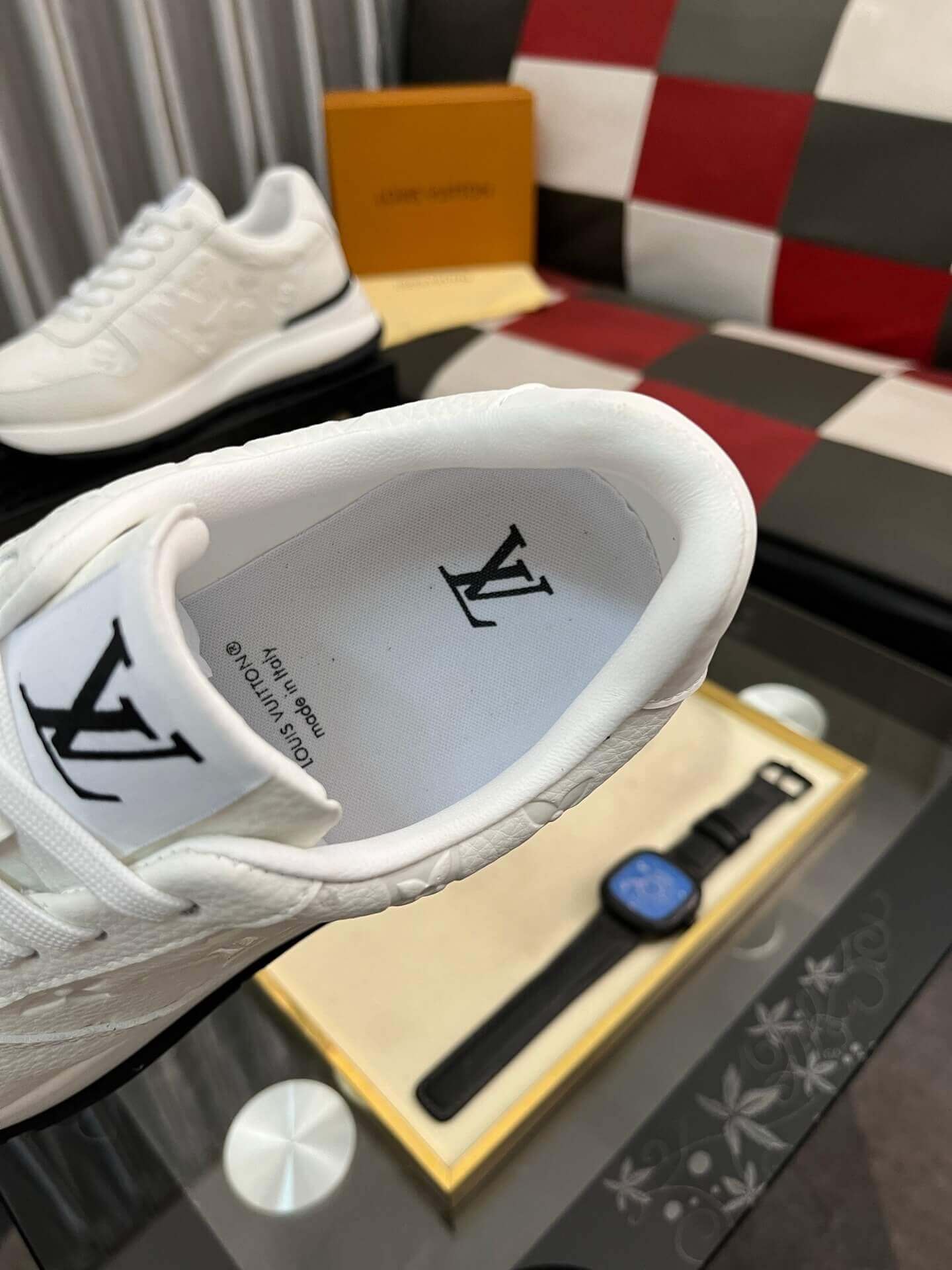 - Pristine White Aesthetic: Crafted in a clean white finish, these trainers feature subtle yet unmistakable Louis Vuitton monogram patterns debossed across the side panels and toe, offering a sophisticated touch of luxury.