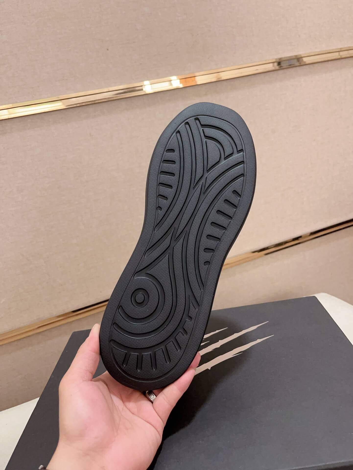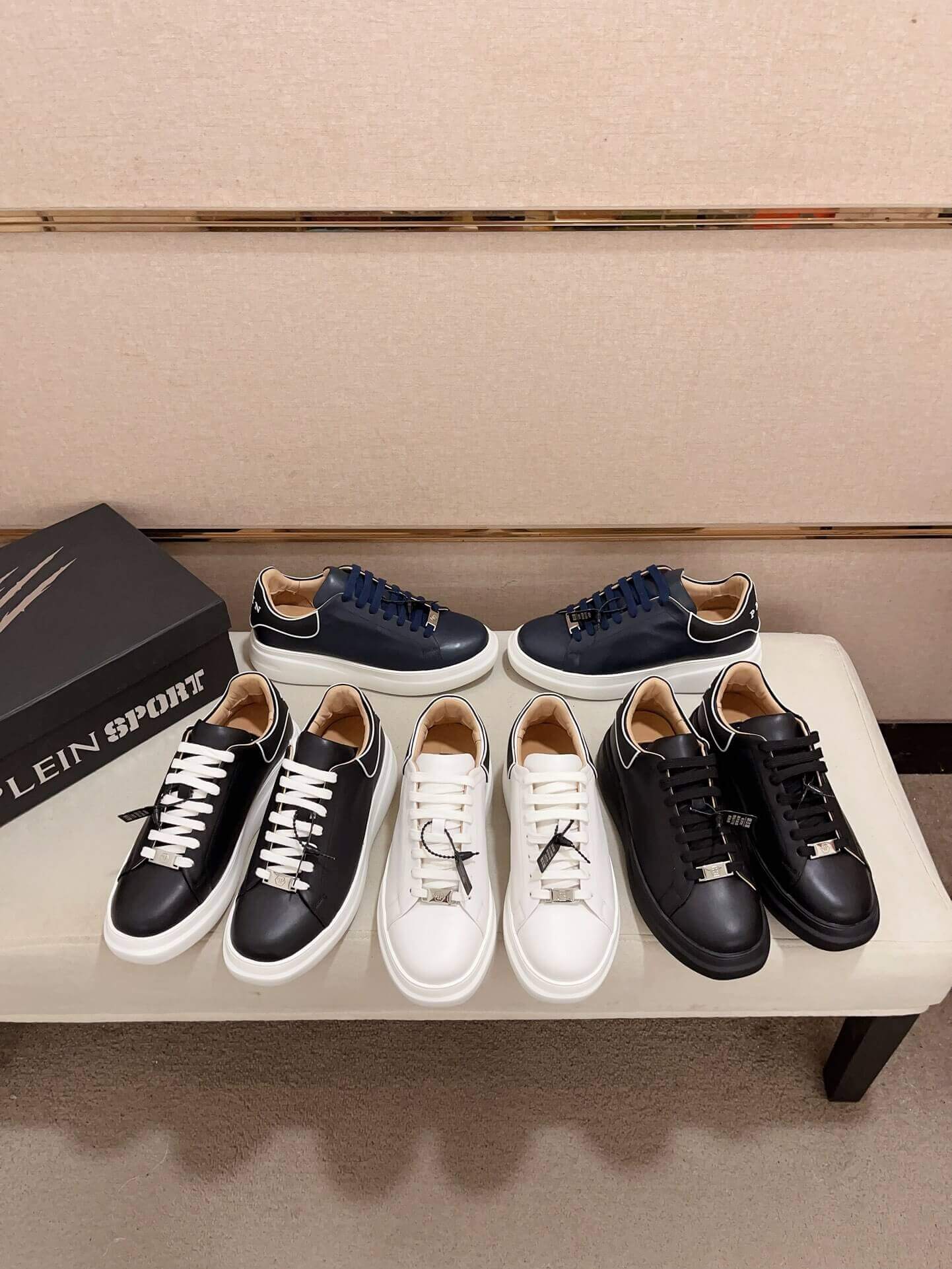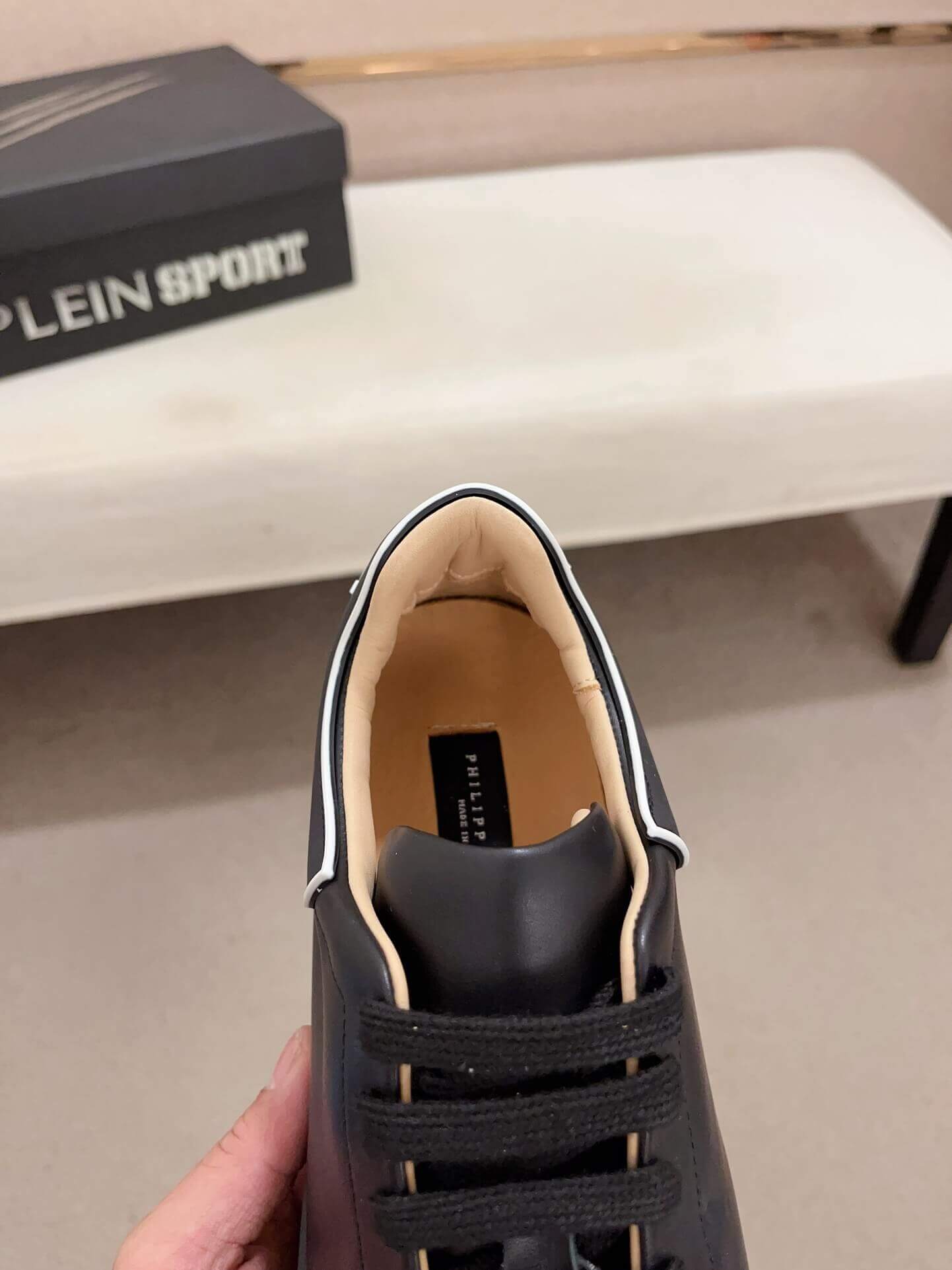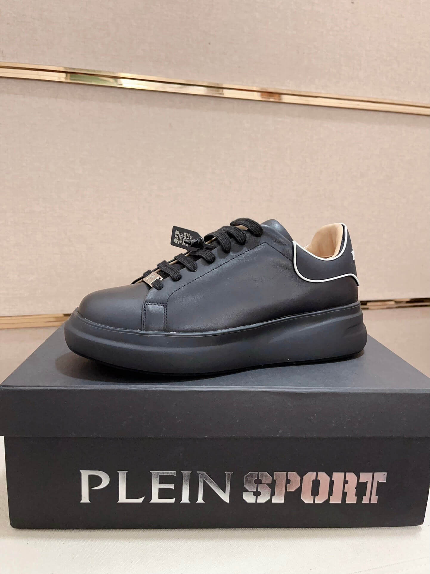 Designed for your most dynamic moments, these Philip Plein Megastar low-top sneakers blend audacious style with unparalleled comfort. The supple nappa leather ensures a premium feel, while matching laces and logoed metal eyelets add a refined yet rebellious touch. A distinctive lettering print on the contrasting colored collar announces your presence with subtle impact. Beneath your feet, a hi-tech, ergonomic, and ultra-lightweight rubber midsole provides superior shock absorption, paired with a grooved rubber outsole for maximum grip. With a nappa lining and removable insole, every element is engineered to deliver a seamless blend of luxurious sensation and athletic prowess.