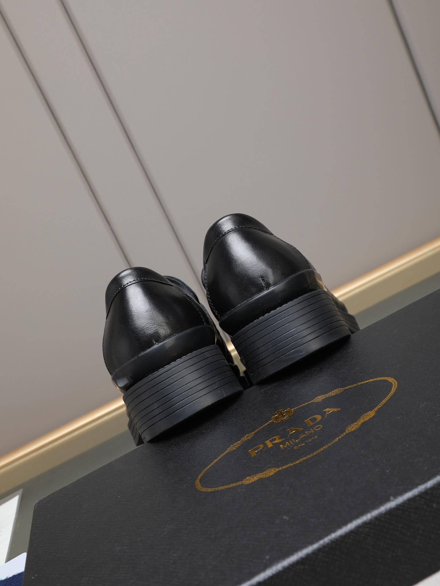• Modern Lug Sole: Set on Prada’s renowned chunky black rubber lug sole, providing superior traction, durability, and a dominant, fashionable profile.