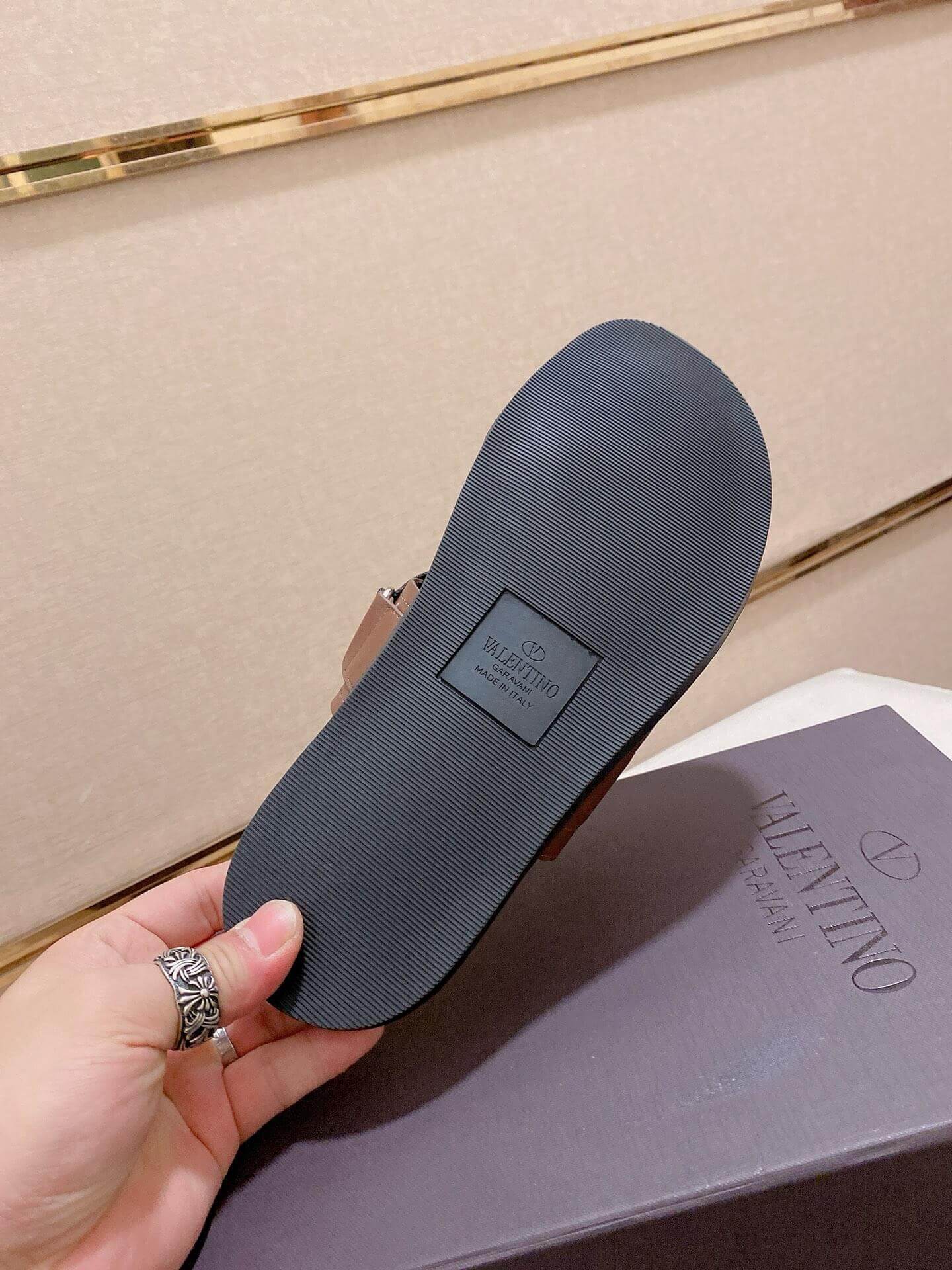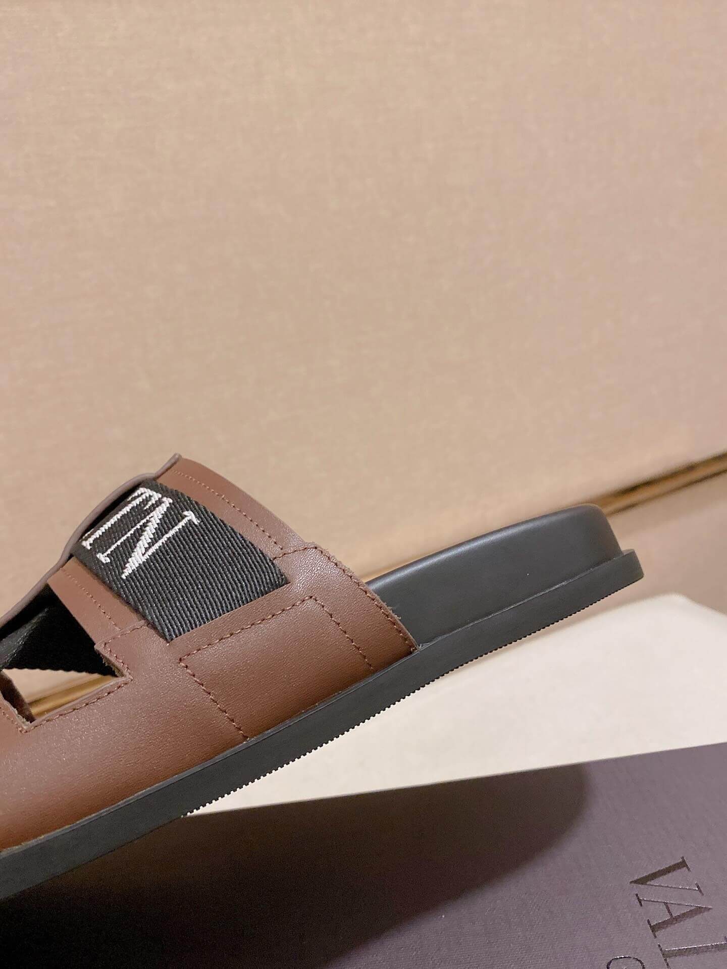 Infuse your look with a dash of modern edge with the Valentino Garavani VLTN Sandals, meticulously crafted from supple brown leather. These effortlessly cool slide sandals feature two prominent straps, each boldly showcasing the iconic “VLTN” logo in crisp white lettering for an unmistakable brand signature. Anchored by a comfortable black molded footbed and a durable black rubber sole, they offer both ease of wear and a strong, contemporary aesthetic. These sandals are a perfect addition for those ready to make a high-fashion statement with their warm-weather ensembles.